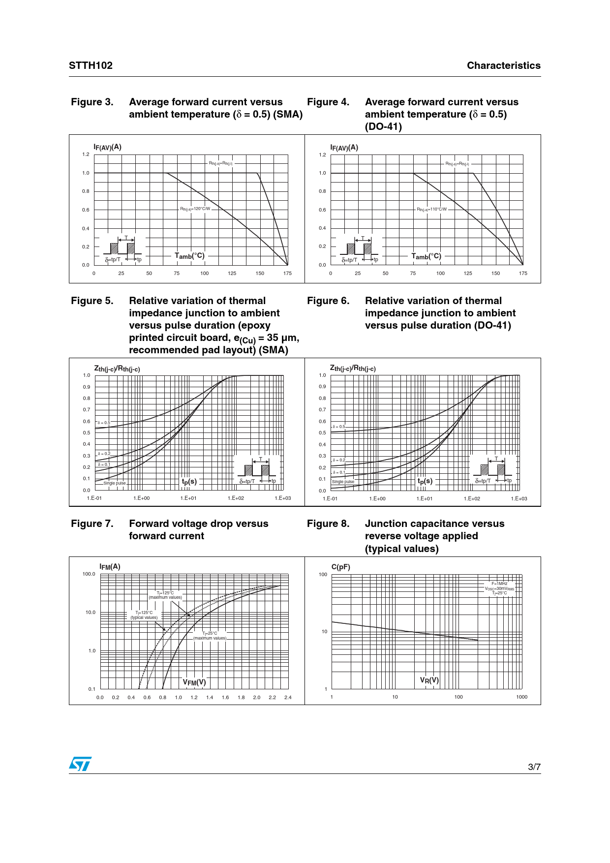 | Seiten / Seite | 7 / 3 — STTH102. Characteristics. Figure 3. Average forward current versus. … |