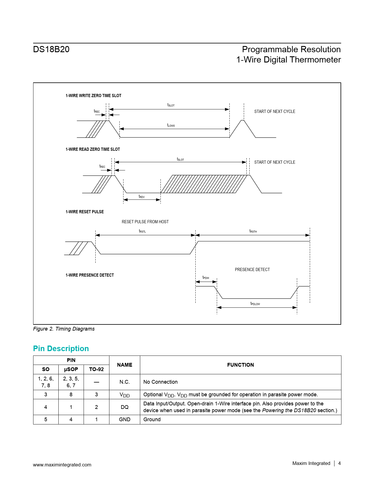 1-WIRE WRITE ZERO TIME SLOT. 1-WIRE READ ZERO TIME SLOT. 1-WIRE RESET PULSE. 1-WIRE PRESENCE DETECT. Pin Description. PIN. NAME