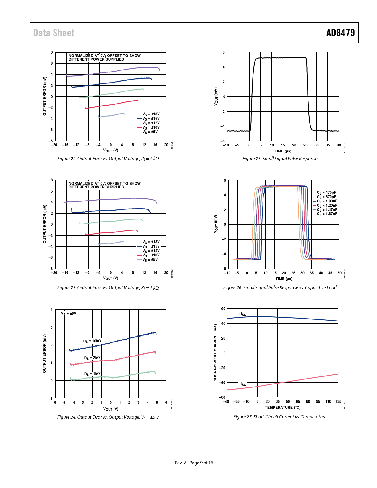 Data Sheet. AD8479. NORMALIZED AT 0V; OFFSET TO SHOW DIFFERENT POWER SUPPLIES. R (. RRO. UT O. P –2 UT. VS = ±18V