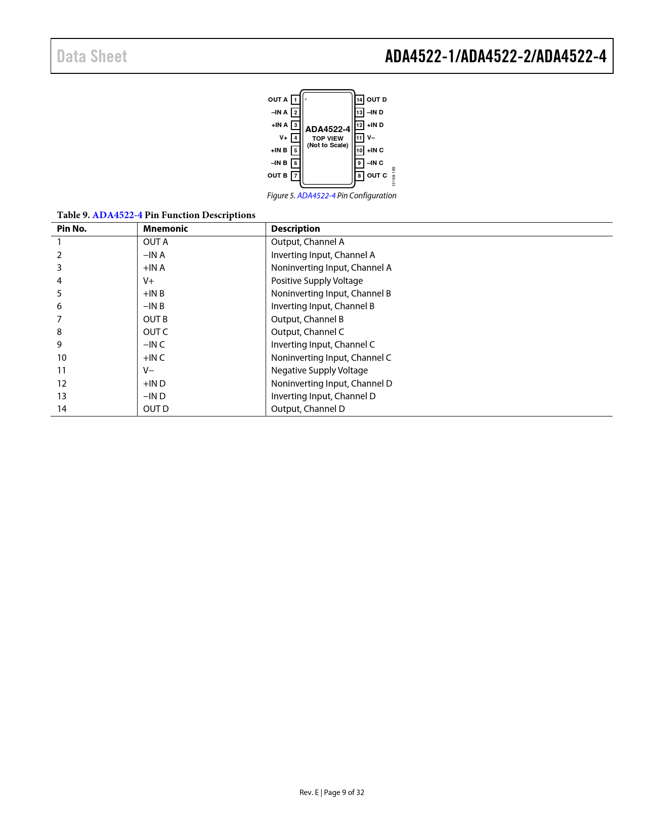 Table 9. ADA4522-4 Pi n Function Descriptions Pin No. Mnemonic Description