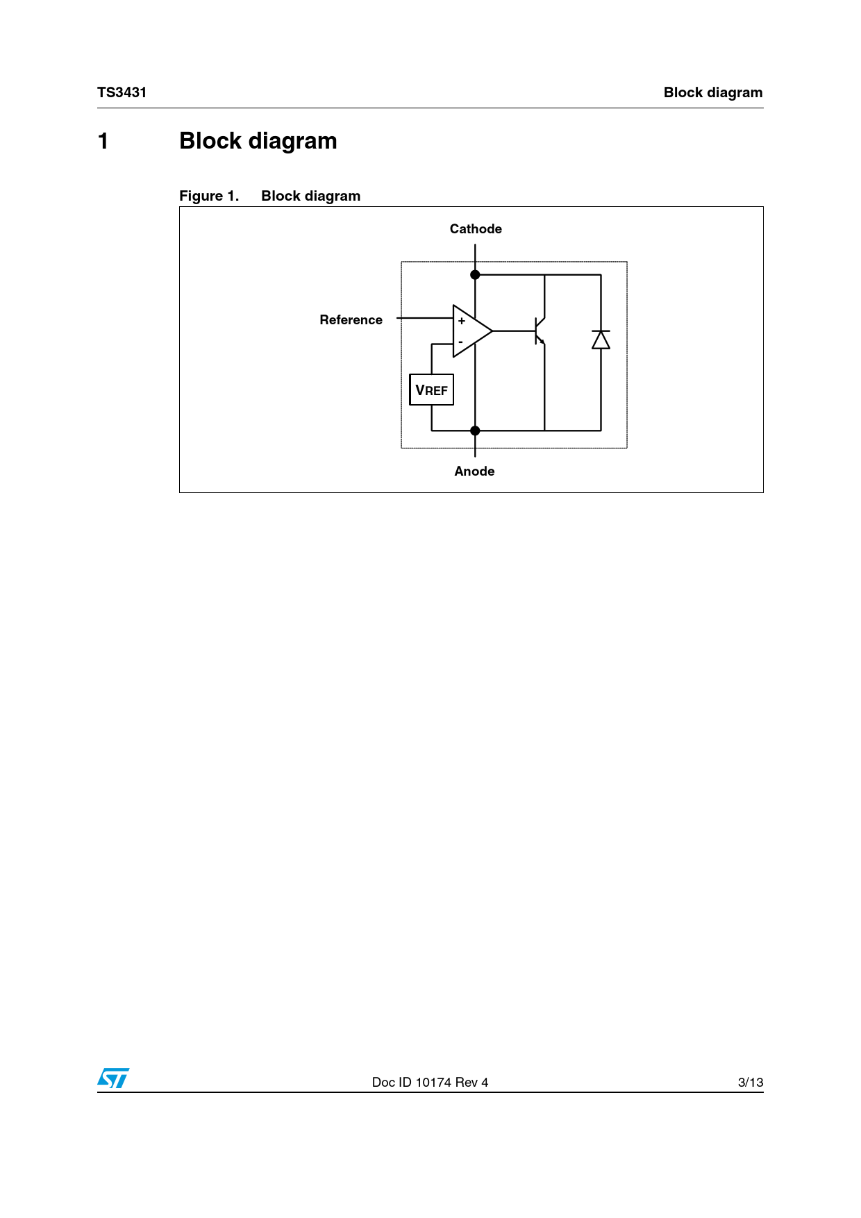 Seiten / Seite13 / 3 — TS3431. Block diagram. 1 Block. diagram. Figure 1. Cathode. Reference. …