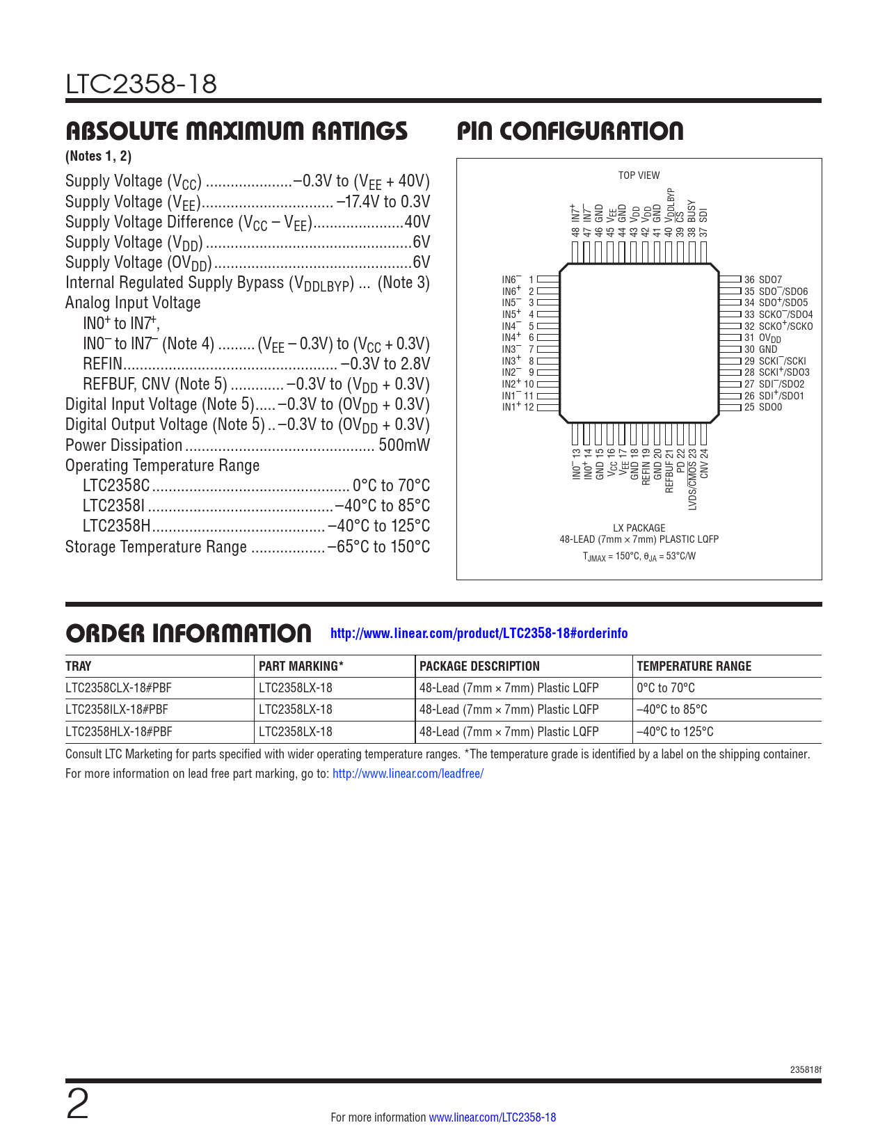 ORDER INFORMATION http://www.linear.com/product/LTC2358-18#orderinfo TRAY PART MARKING* PACKAGE DESCRIPTION TEMPERATURE RANGE