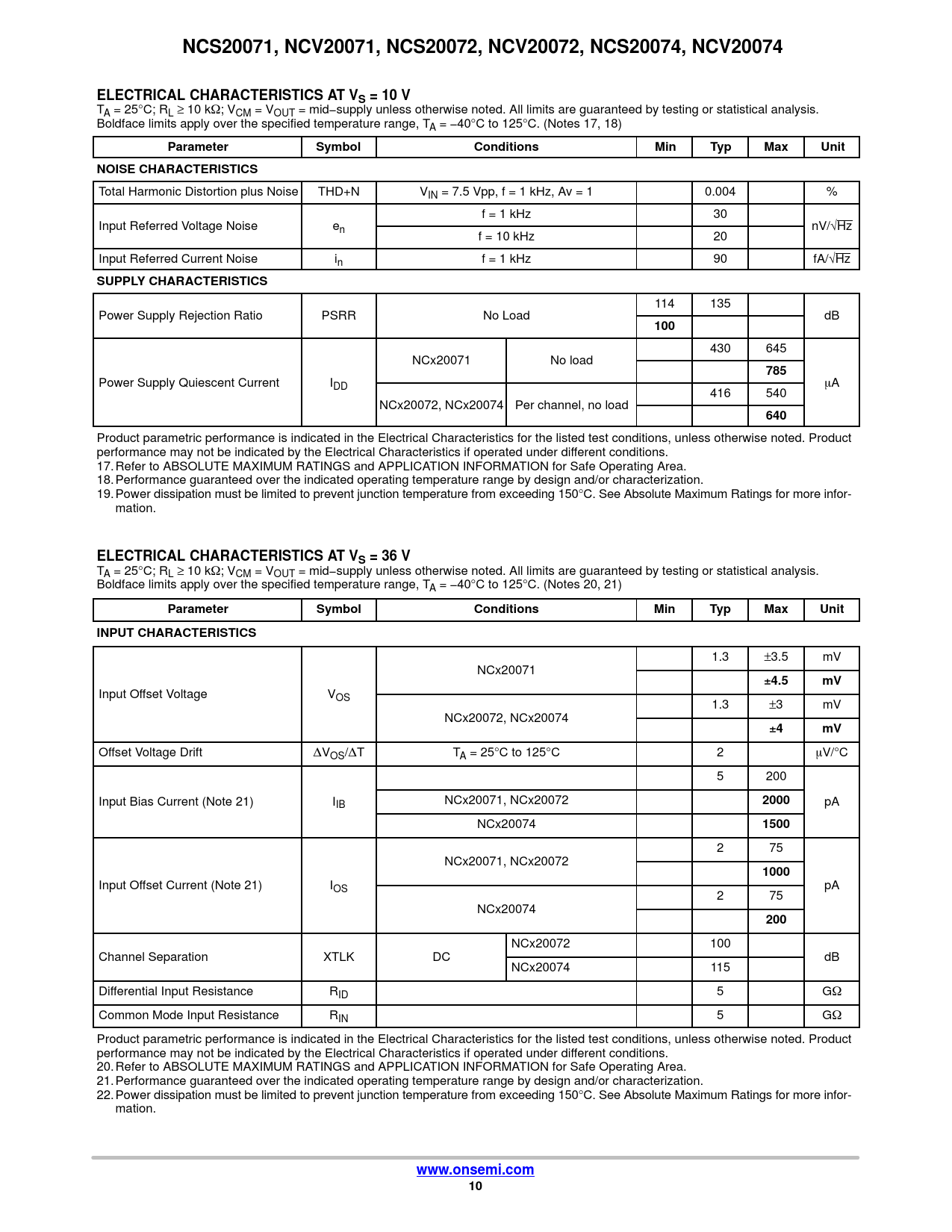 NCS20071, NCV20071, NCS20072, NCV20072, NCS20074, NCV20074 ELECTRICAL CHARACTERISTICS AT VS = 10 V