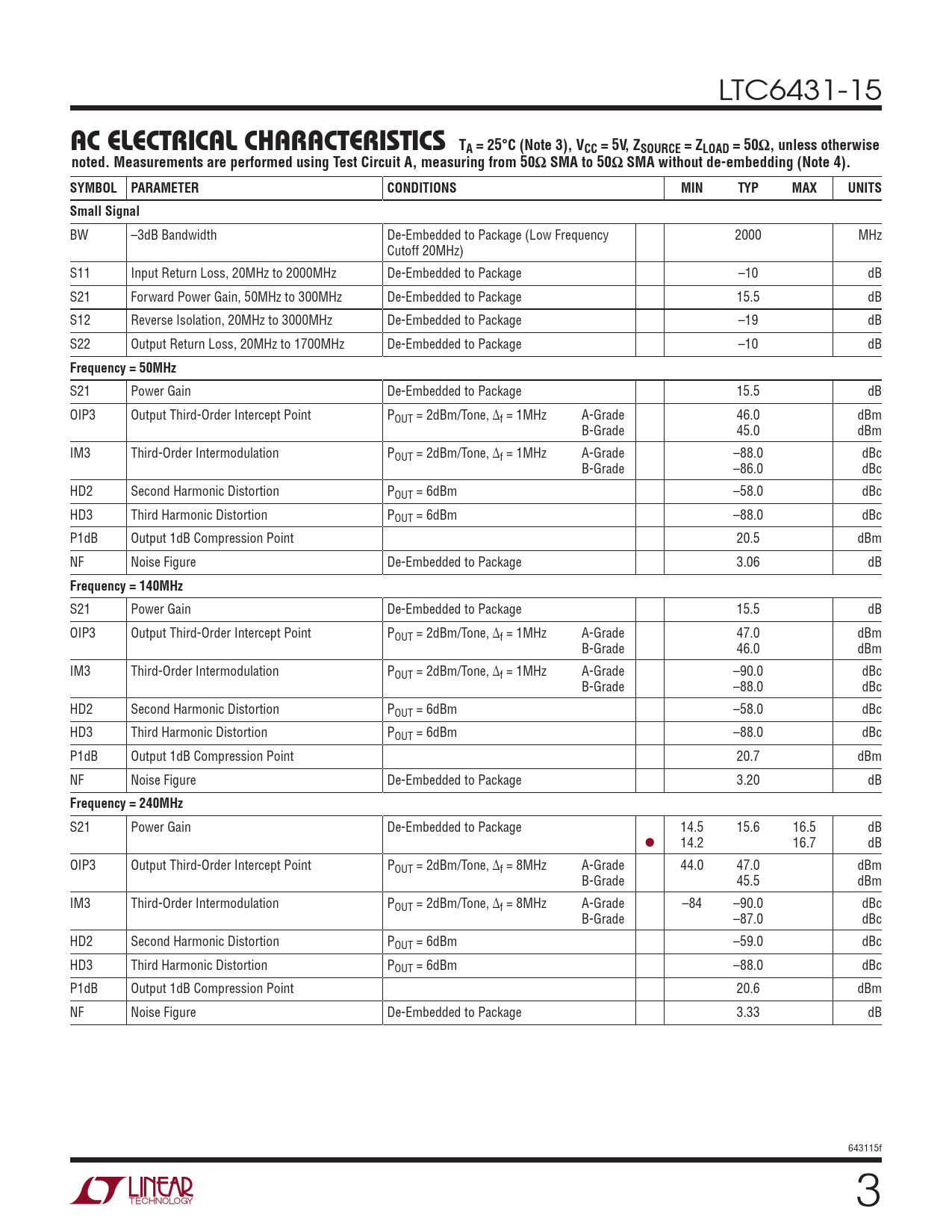 Datasheet LTC6431-15 (Analog Devices) - 3