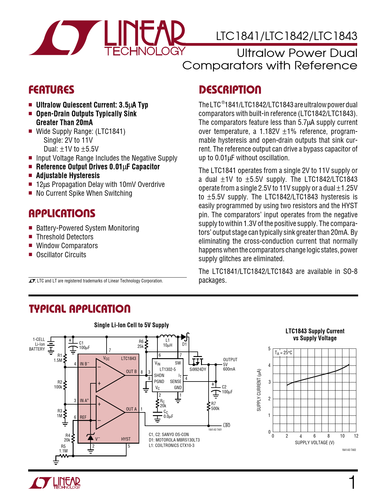 The LTC®1841/LTC1842/LTC1843 are ultralow power dual ■