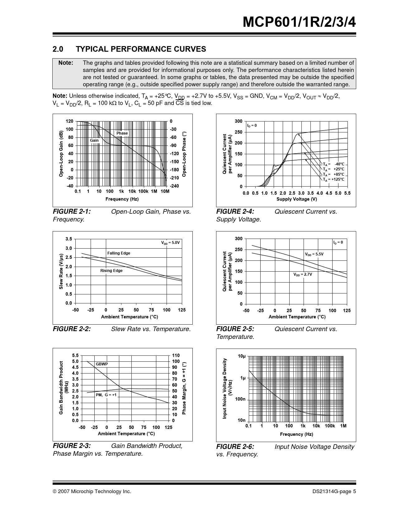MCP601/1R/2/3/4. 2.0. TYPICAL PERFORMANCE CURVES. Note:. 120. 300 IO = 0. 100. -30. Phase. 250. -60. Gain. -90. ase (. 200. r (µA). Current. -120. 150. ent