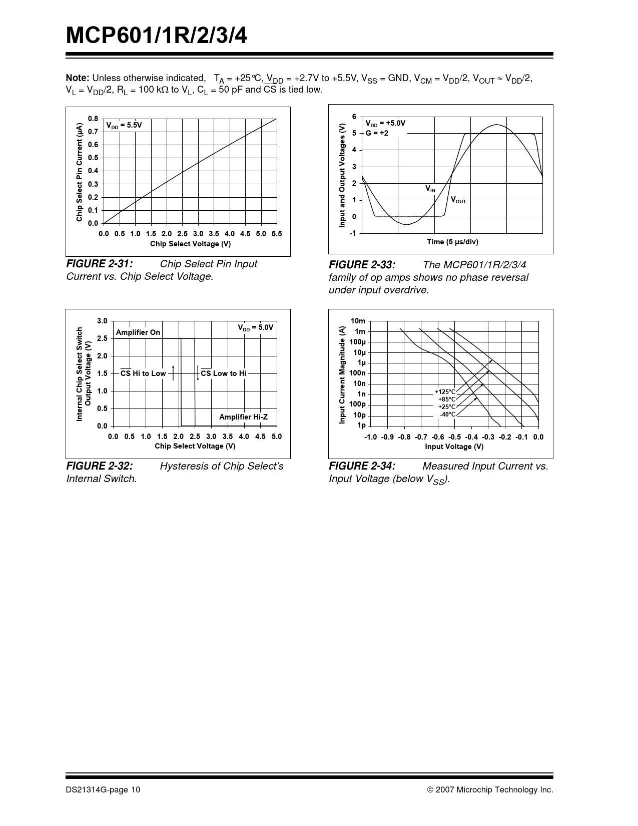 MCP601/1R/2/3/4. Note:. 0.8. DD = 5.5V. DD = +5.0V. 0.7. G = +2. t (µA) 0.6 rren. 0.5. in 0.4. put Voltages (V). t P 0.3. lec. VIN. 0.2. d Out 1. VOUT