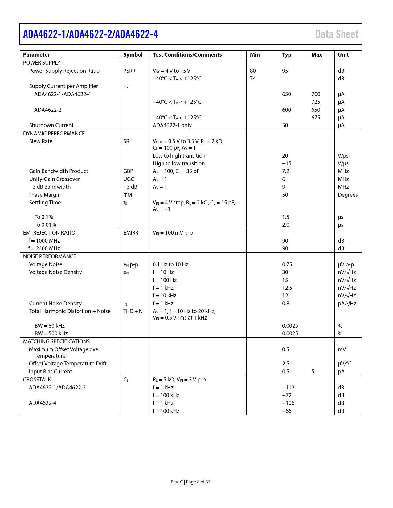 Seiten / Seite37 / 8 — ADA4622-1/. ADA4622-2/. ADA4622-4. Data Sheet. Parameter. Symbol. Test …