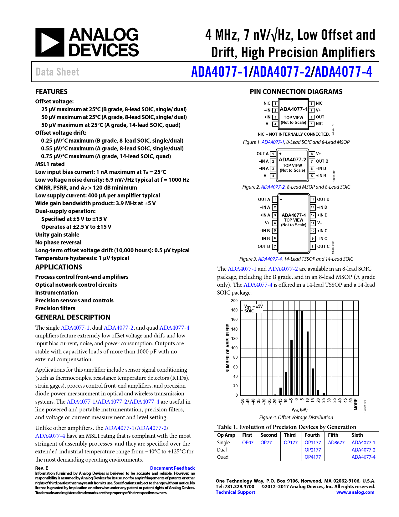4 MHz, 7 nV/√Hz, Low Offset and. Drift, High Precision Amplifiers. Data Sheet. ADA4077-1. /ADA4077-2/. ADA4077-4. FEATURES