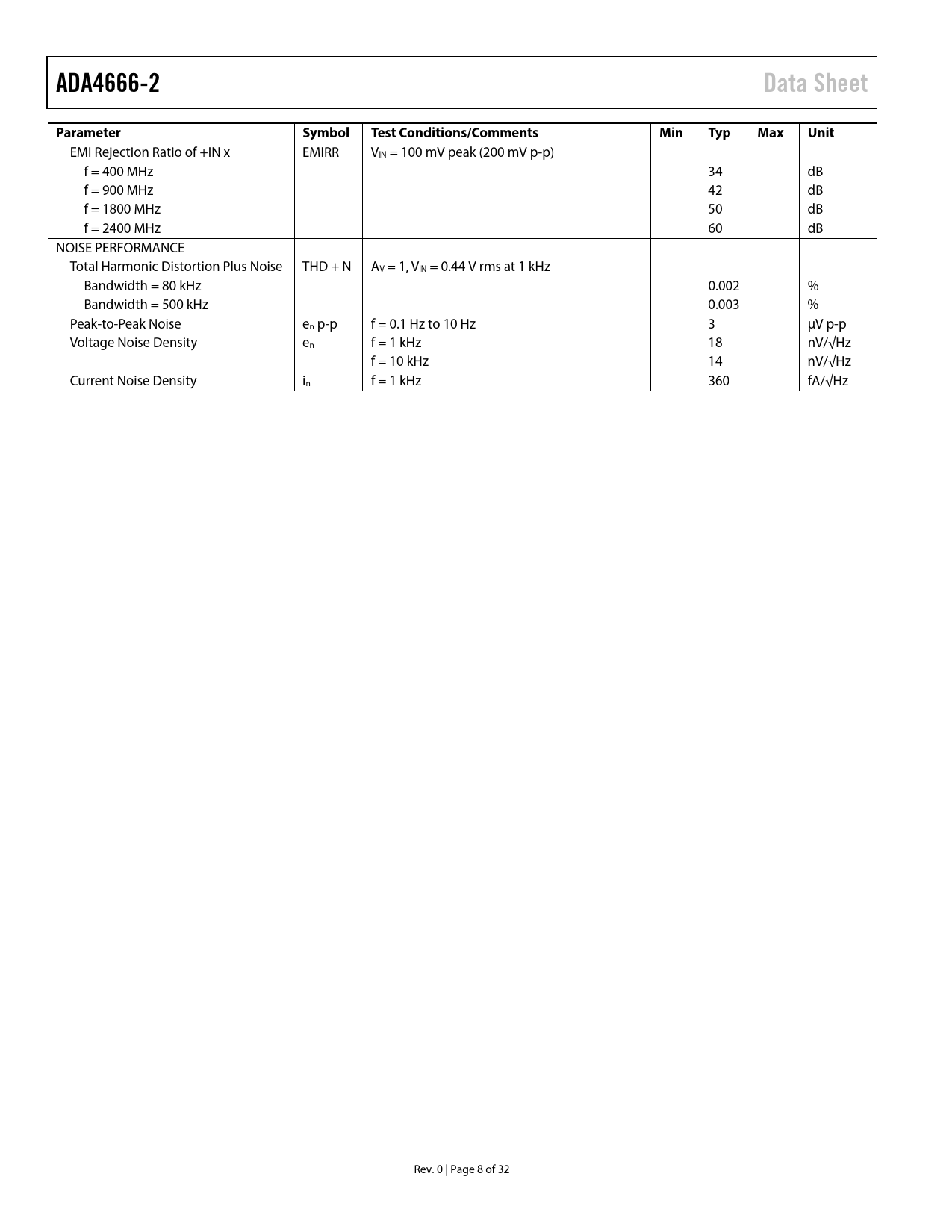Seiten / Seite33 / 9 — ADA4666-2. Data Sheet. Parameter. Symbol. Test Conditions/Comments. Min. …