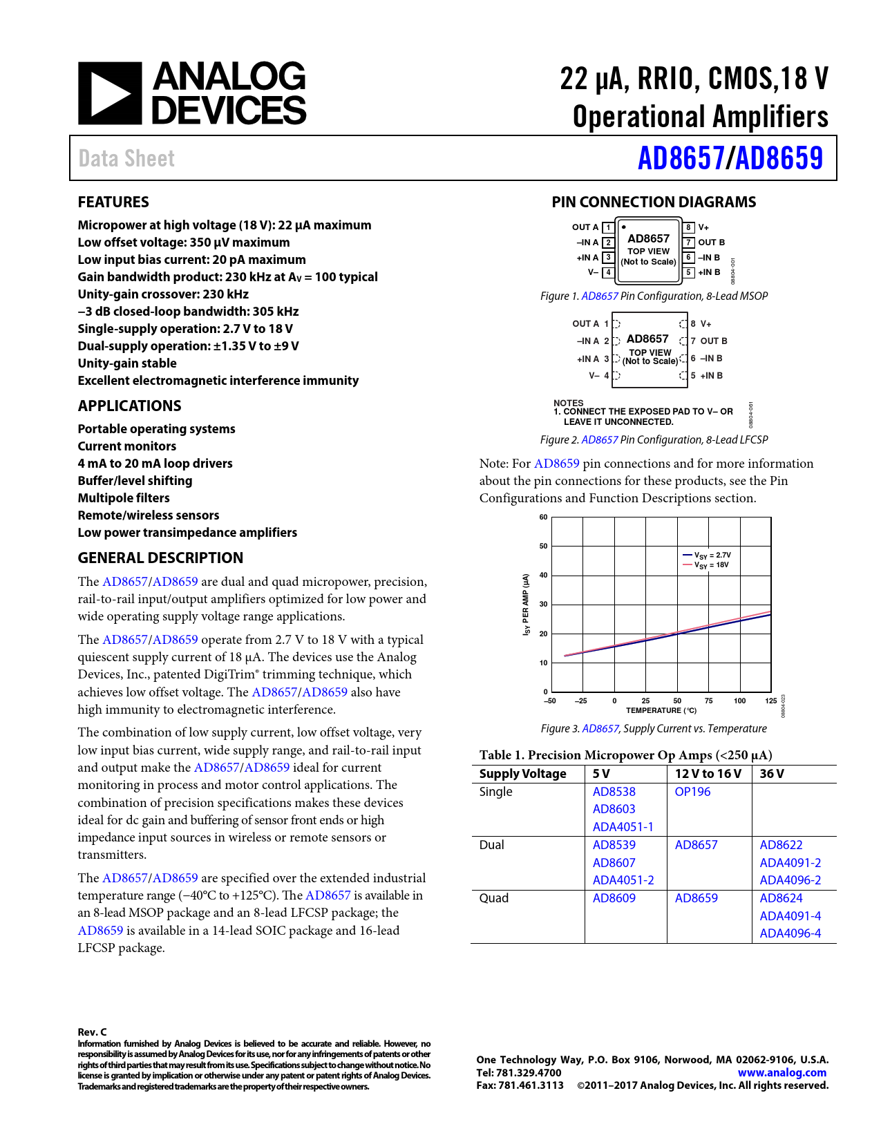 | Seiten / Seite | 24 / 1 — 22 μA, RRIO, CMOS,18 V. Operational Amplifiers. Data Sheet. AD8657/. … |