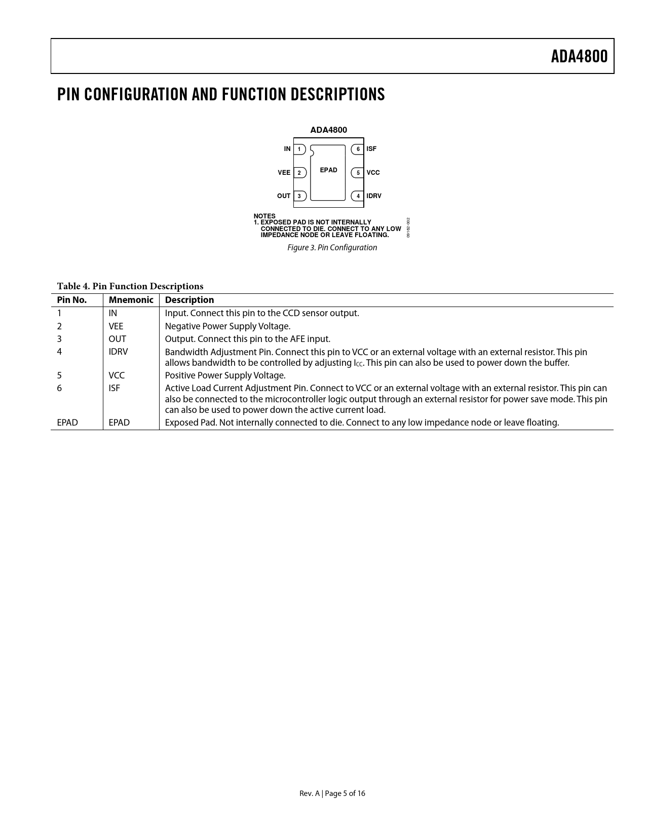 ADA4800. PIN CONFIGURATION AND FUNCTION DESCRIPTIONS. ISF. EPAD. VEE. VCC. OUT. IDRV. NOTES. 1. EXPOSED PAD IS NOT INTERNALLY