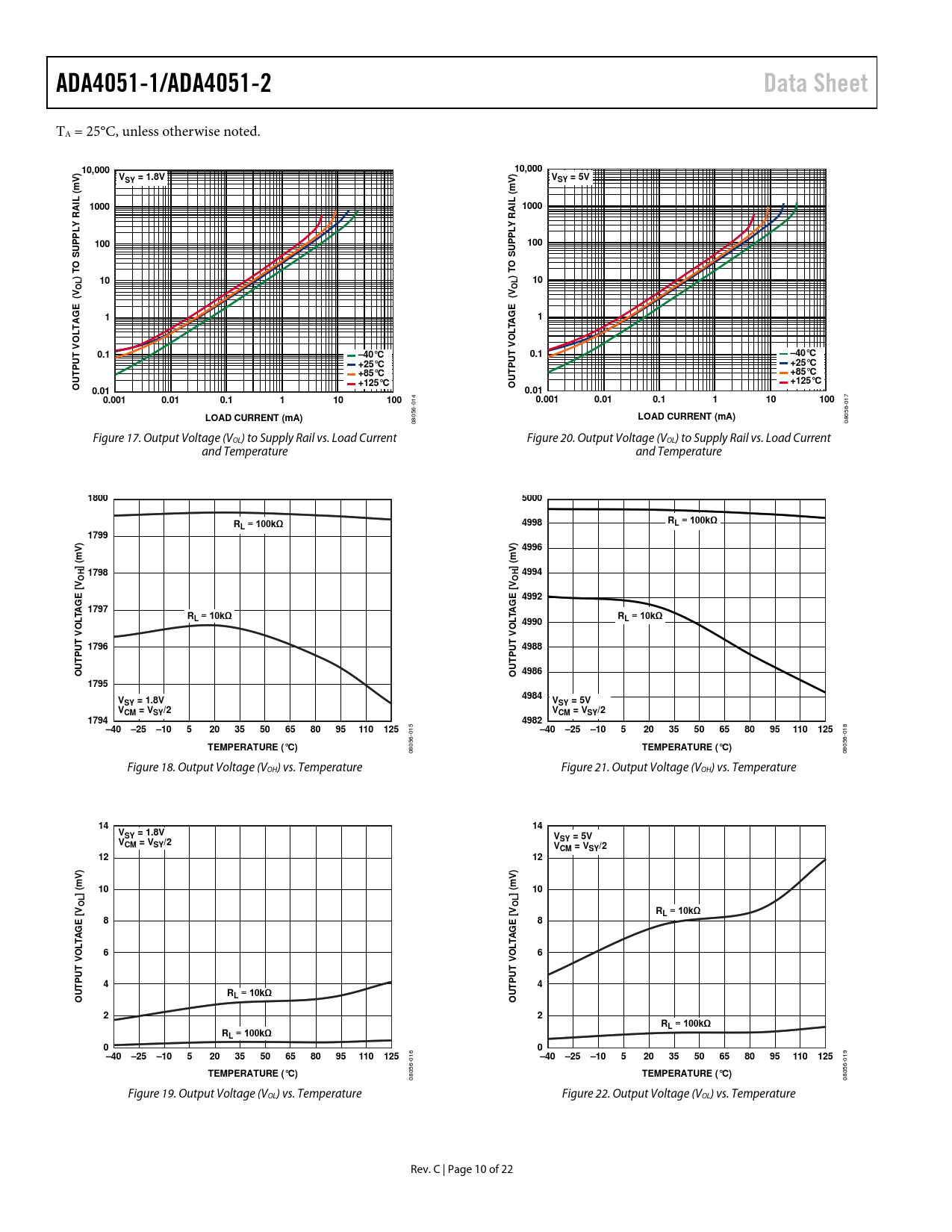 ADA4051-1/ADA4051-2. Data Sheet. 10,000. VSY = 1.8V. VSY = 5V. 1000. RAI. Y R. Y L. PPL. 100. O T. ) T. V (. E (V. A LT. OLTA. T V. 0.1. –40°C. +25°C. +85°C