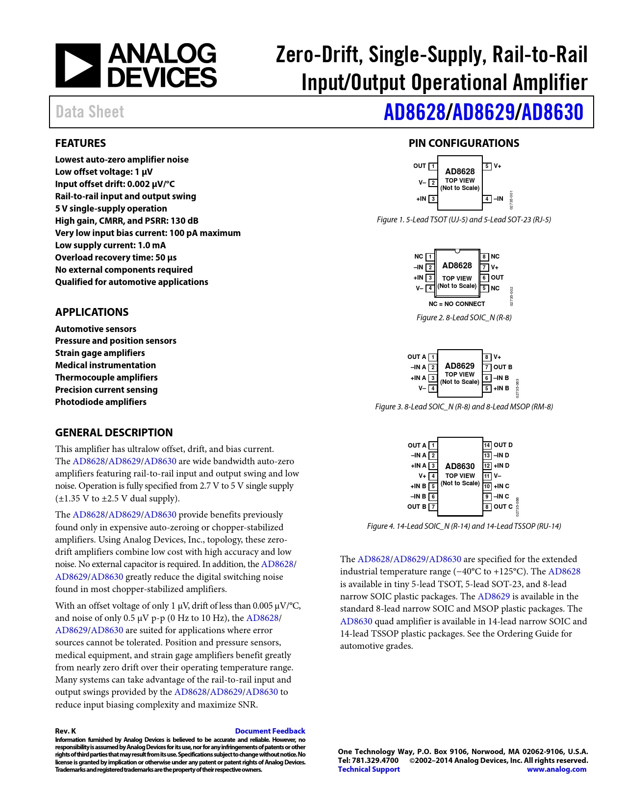 Datasheet AD8628, AD8629, AD8630 (Analog Devices)