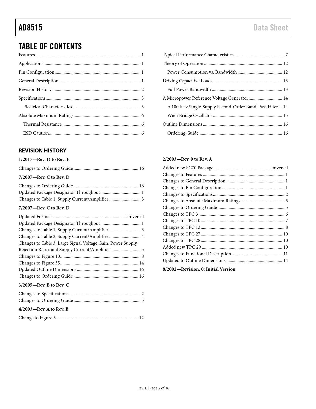 REVISION HISTORY 1/2017—Rev. D to Rev. E 2/2003—Rev. 0 to Rev. A