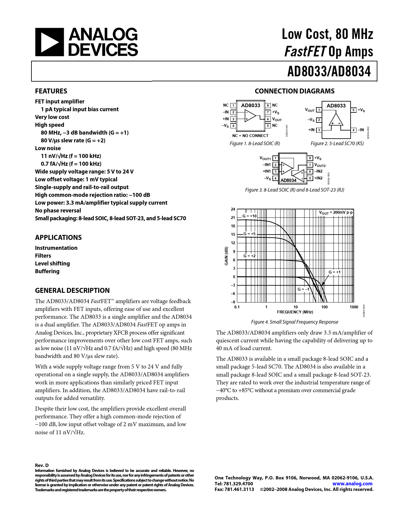 | Seiten / Seite | 24 / 1 — Low Cost, 80 MHz. FastFET. Op Amps. AD8033/AD8034. FEATURES. CONNECTION … |