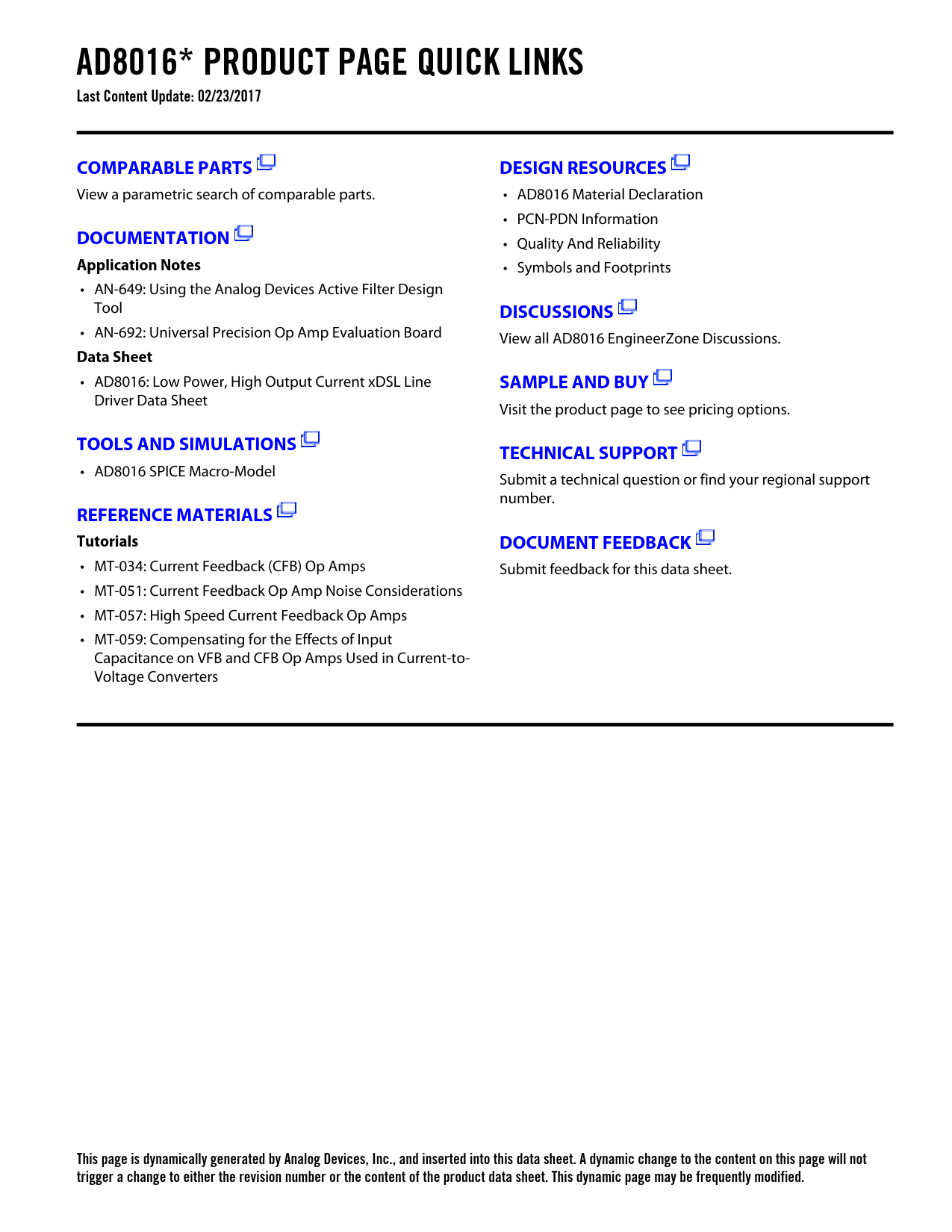This page is dynamically generated by Analog Devices, Inc., and inserted into this data sheet. A dynamic change to the content on this page will not trigger a change to either the revision number or the content of the product data sheet. This dynamic page may be frequently modified.