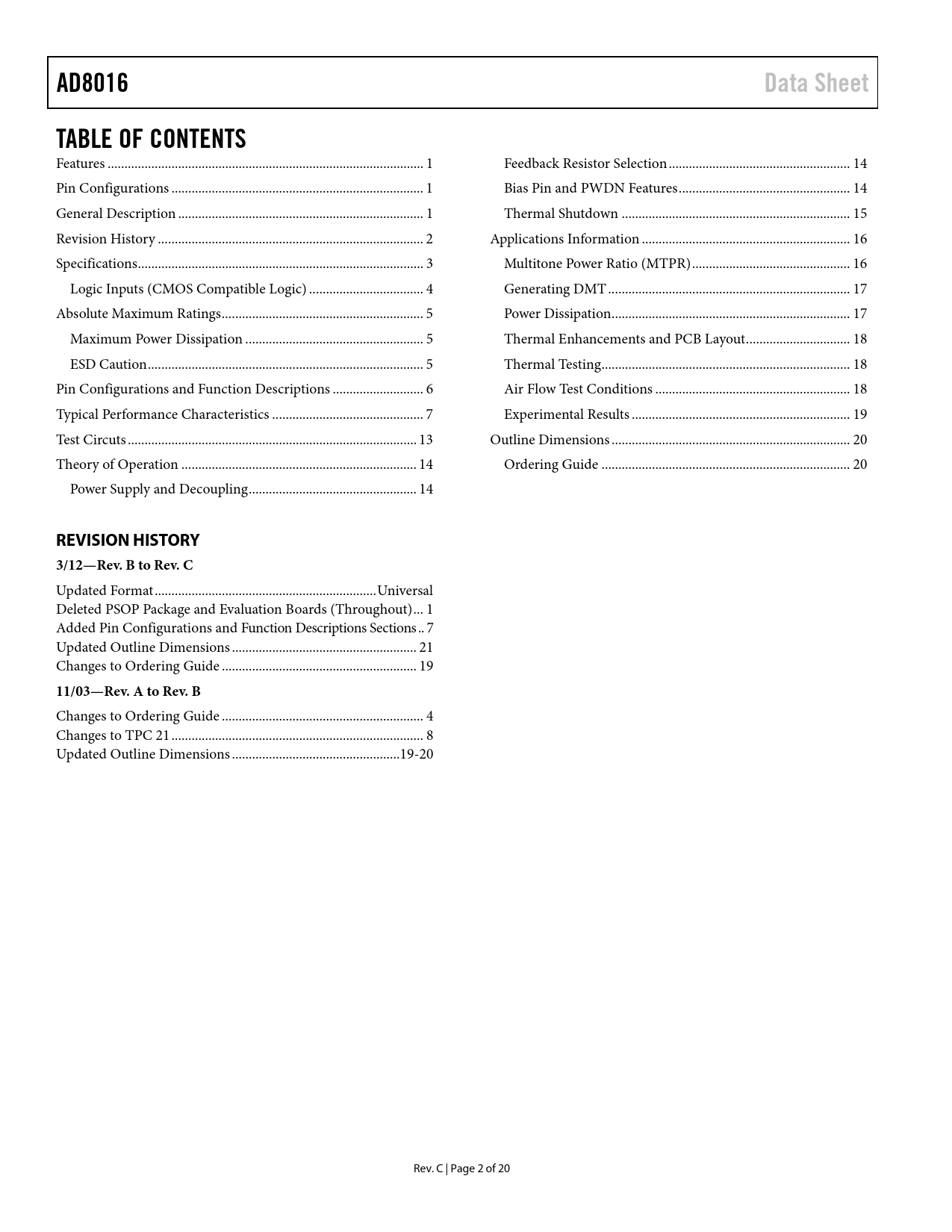 REVISION HISTORY 3/12—Rev. B to Rev. C