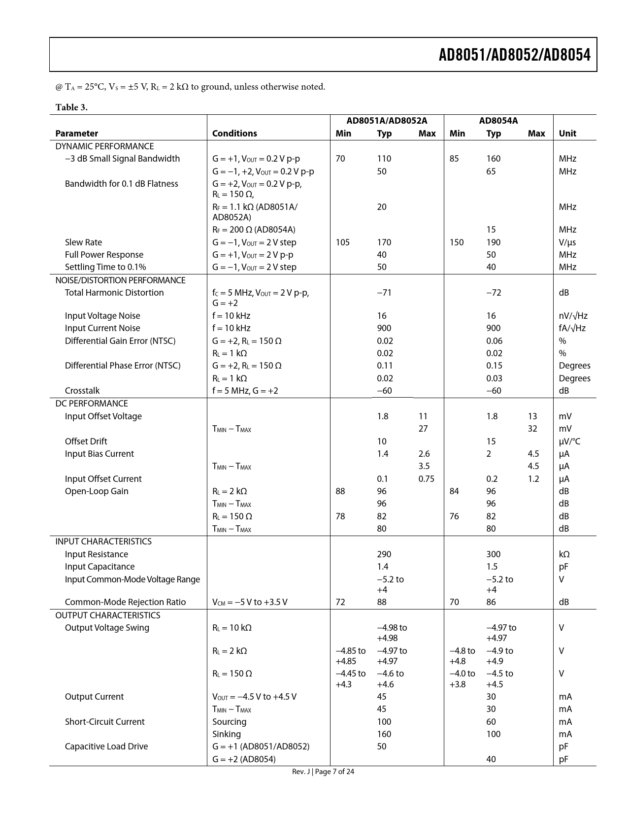 | Seiten / Seite | 24 / 7 — AD8051/AD8052/AD8054. Table 3. AD8051A/AD8052A. AD8054A. Parameter. … |