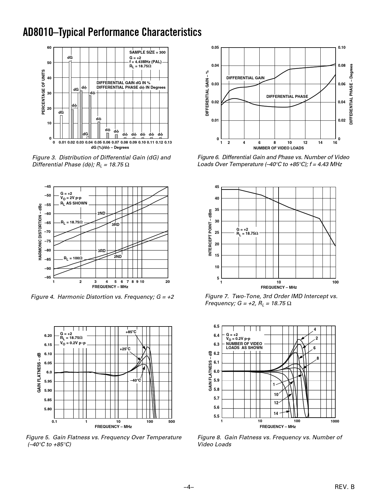 AD8010–Typical Performance Characteristics 0.05 0.10 SAMPLE SIZE = 300 G = +2 f = 4.43MHz (PAL) R 0.04 0.08 L = 18.75 % –