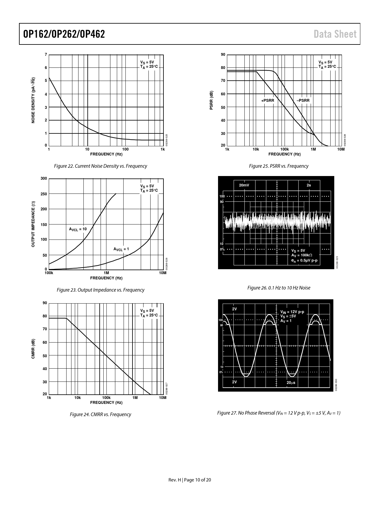 OP162/OP262/OP462. Data Sheet. VS = 5V. TA = 25. Hz). +PSRR. –PSRR. PSRR (dB). NOISE DENSITY (pA/. 100. 10k. 100k. 10M. FREQUENCY (Hz). 300. 20mV