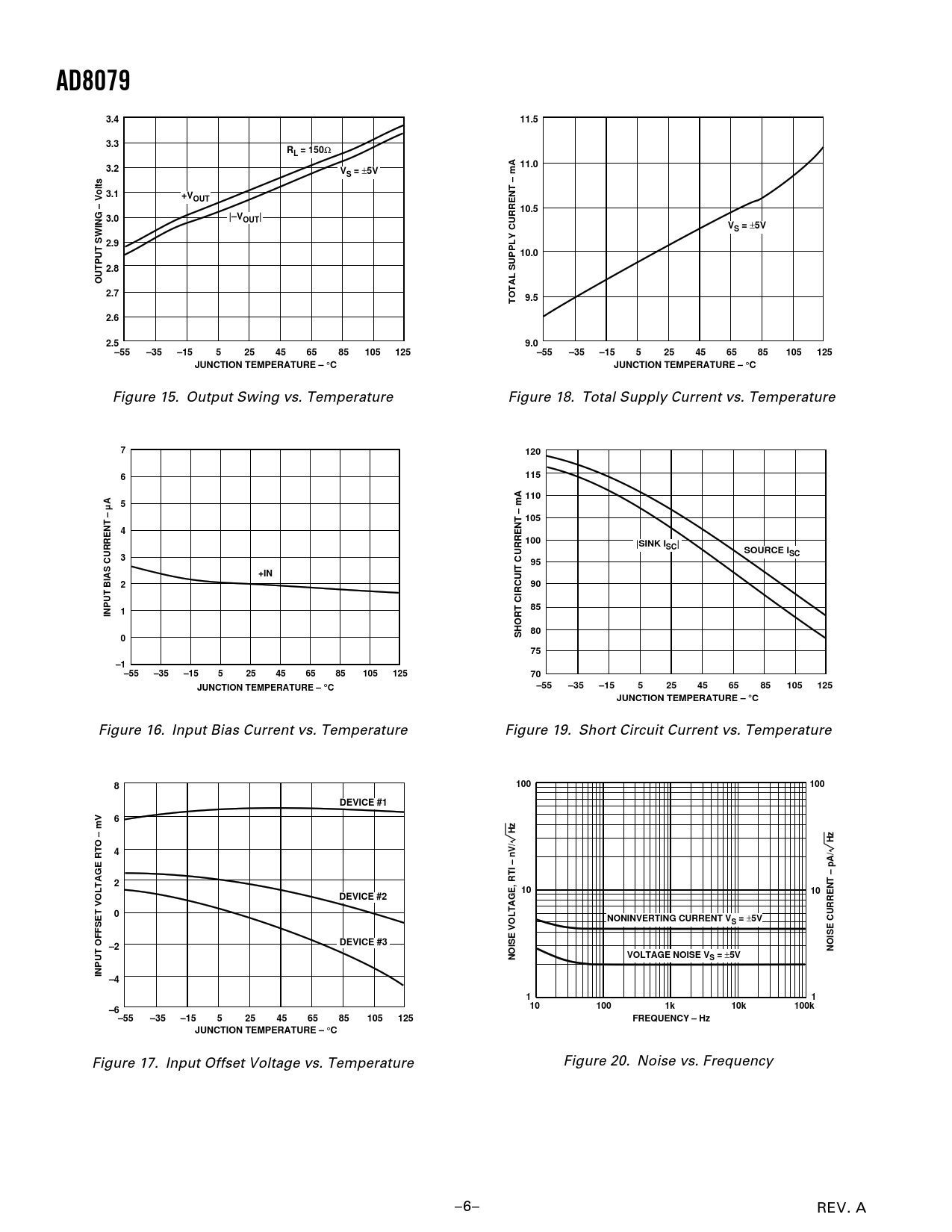 Figure 17. Input Offset Voltage vs. Temperature Figure 20. Noise vs. Frequency –6– REV. A