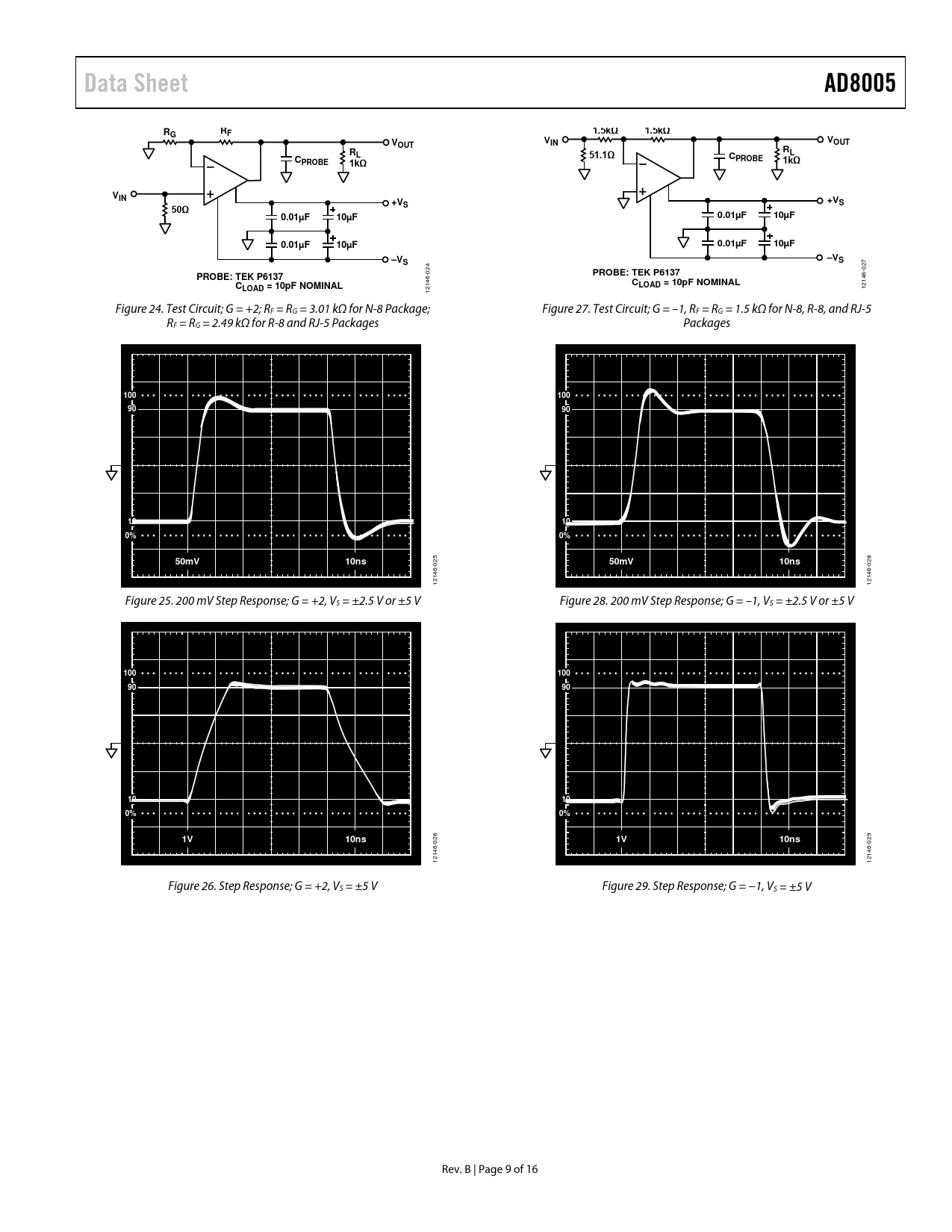 Data Sheet AD8005 1.5kΩ OUT 51.1Ω CPROBE PROBE 1kΩ VIN +VS 50Ω 0.01µF 10µF PROBE: TEK P6137 CLOAD = 10pF NOMINAL LOAD = 10pF NOMINAL