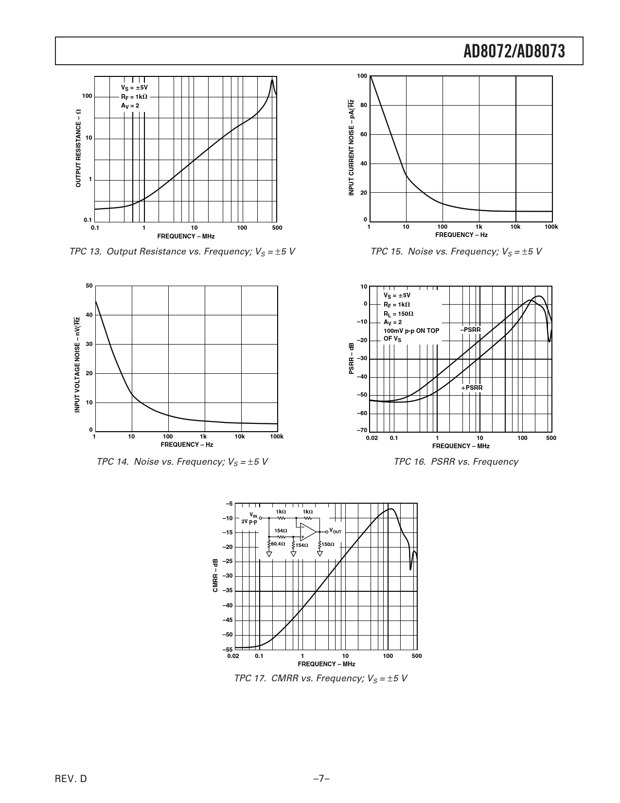 AD8072/AD8073. 100. VS =. RF = 1k. AV = 2. pA/ Hz –. OUTPUT RESISTANCE. INPUT CURRENT NOISE. 0.1. 500. 10k. 100k. FREQUENCY – MHz. FREQUENCY – Hz