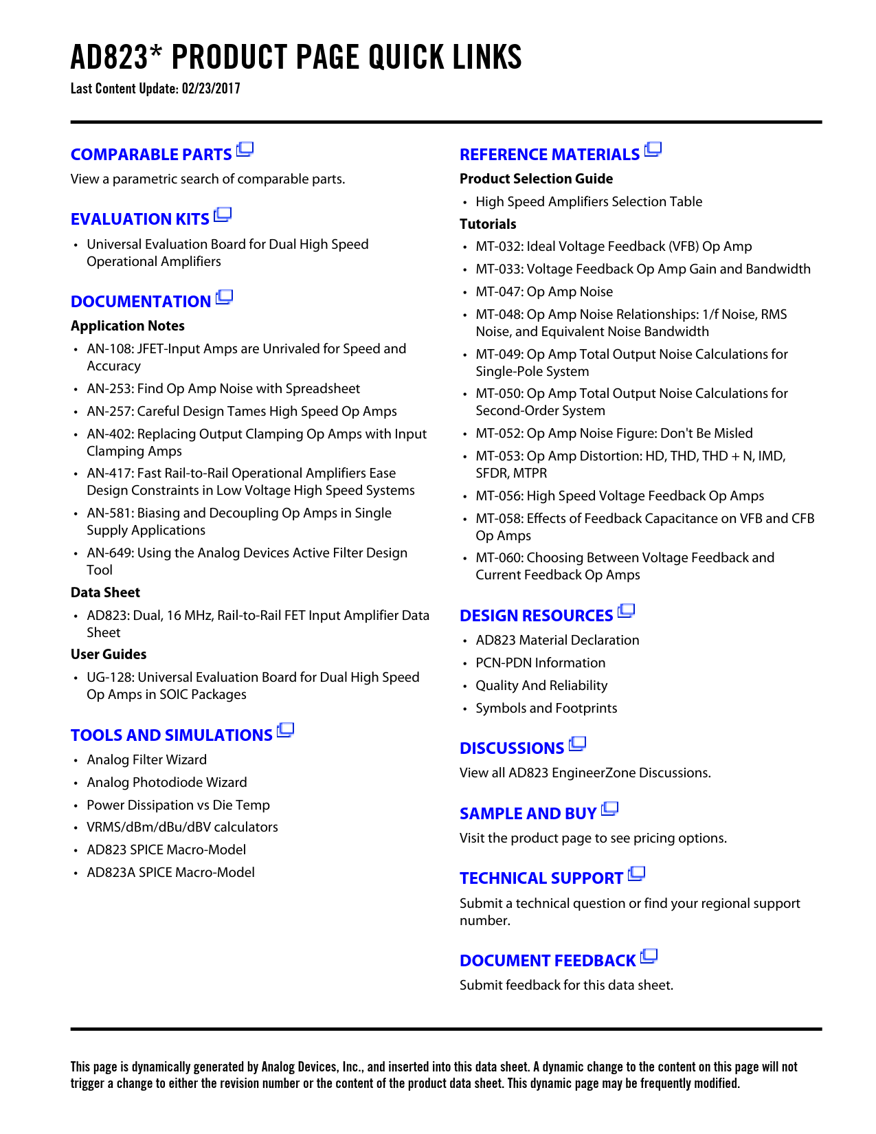 This page is dynamically generated by Analog Devices, Inc., and inserted into this data sheet. A dynamic change to the content on this page will not trigger a change to either the revision number or the content of the product data sheet. This dynamic page may be frequently modified.