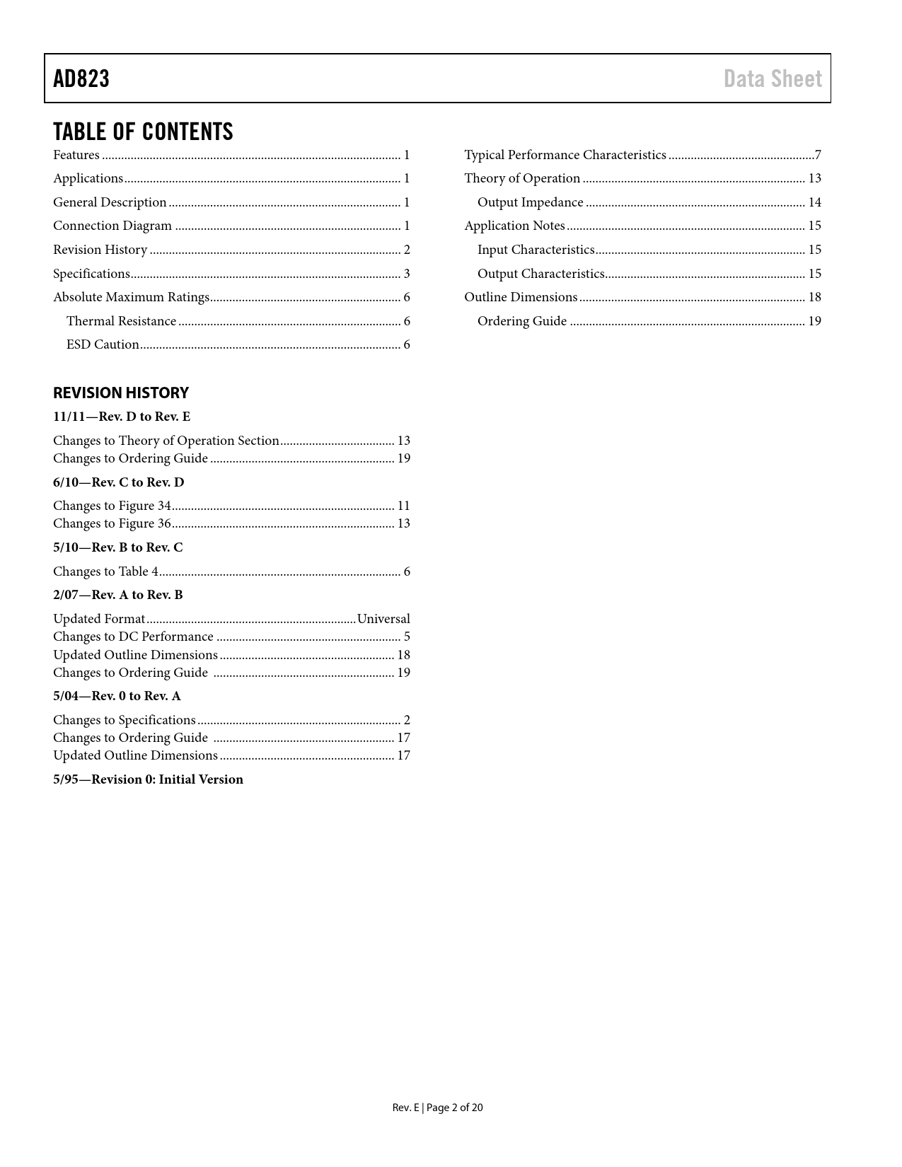 AD823. Data Sheet. TABLE OF CONTENTS. REVISION HISTORY. 11/11—Rev. D to Rev. E. 6/10—Rev. C to Rev. D. 5/10—Rev. B to Rev. C