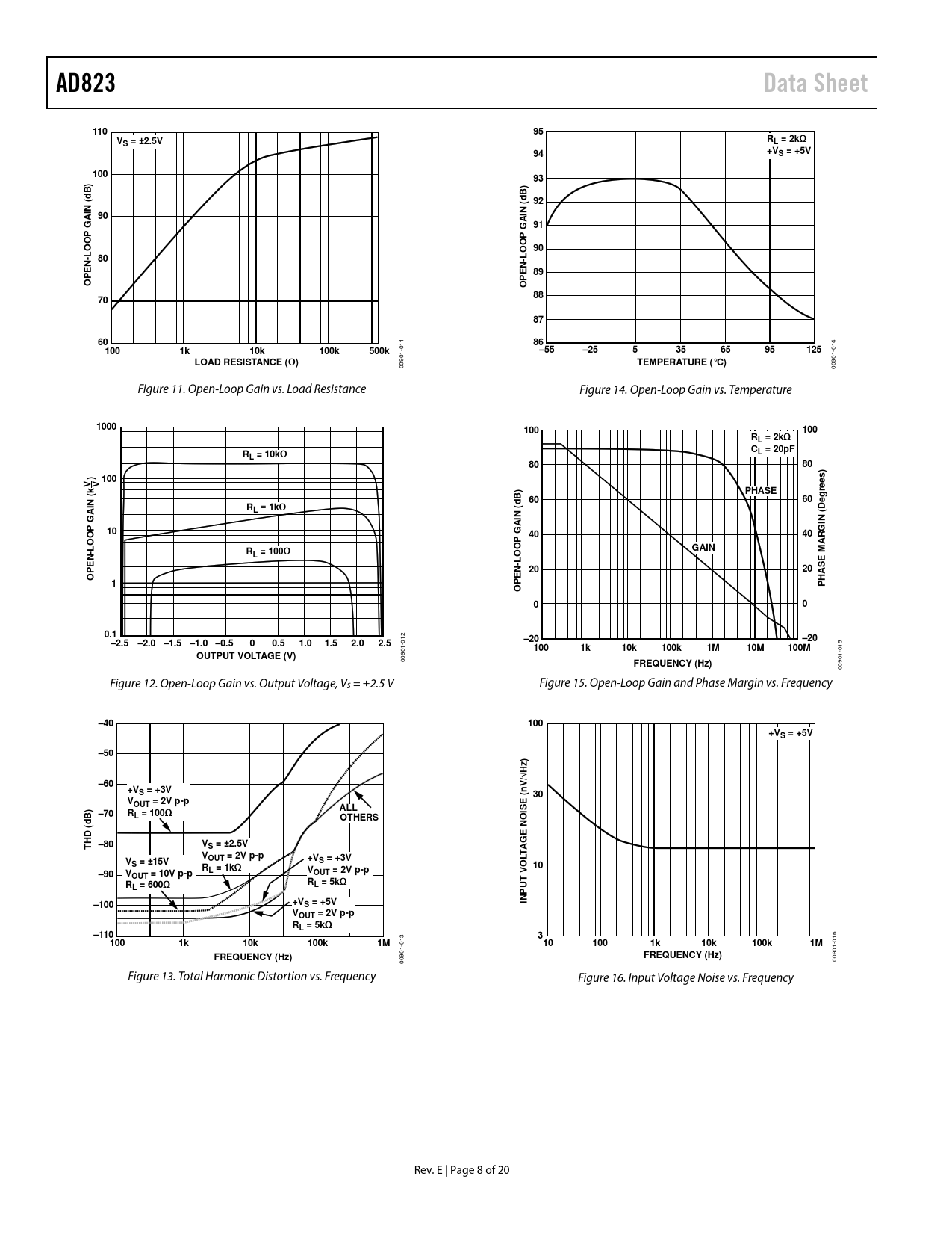 AD823. Data Sheet. 110. S = ±2.5V. L = 2kΩ. +VS = +5V. 100. B) d. B) d 92. N (. AI 90. G P. O 90. -L 80. PEN. 10k. 100k. 500k. –55. –25. 125. LOAD RESISTANCE (Ω)