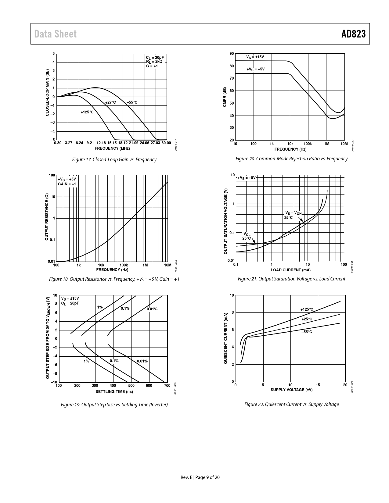 Data Sheet. AD823. L = 20pF. S = ±15V. RL = 2kΩ G = +1. S = +5V. d N (. AI G P. -LOO. RR (. +27°C. –55°C. LOS. +125°C. C –2