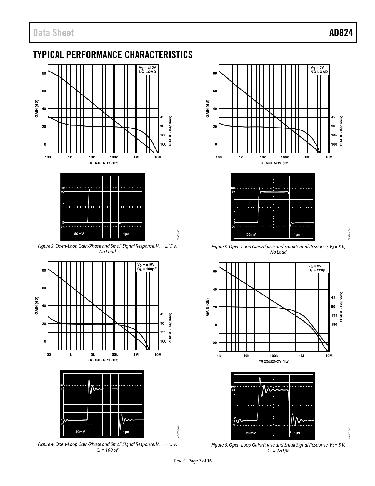 Data Sheet AD824 TYPICAL PERFORMANCE CHARACTERISTICS VS = ±15V VS = 5V NO LOAD N ( rees) Deg 135 HAS 180 100 10k 100k 10M
