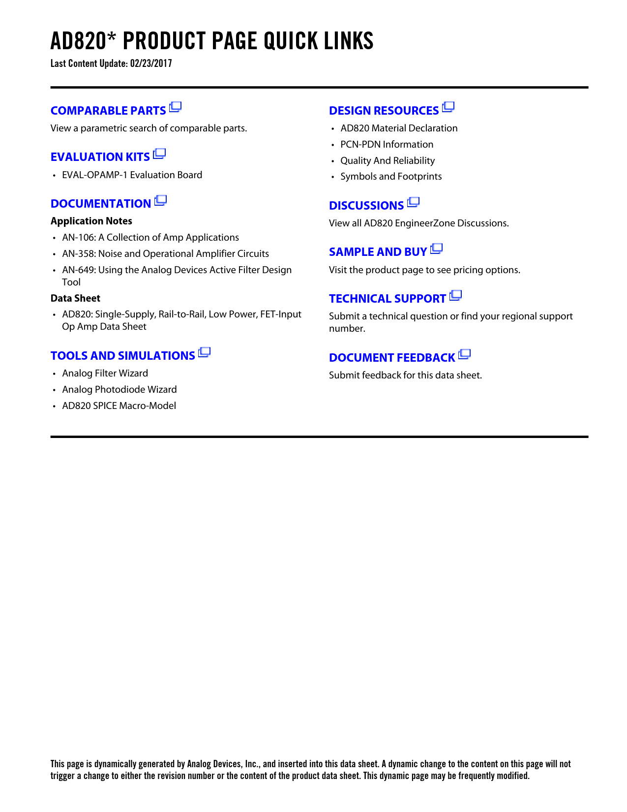 Seiten / Seite25 / 2 — AD820* PRODUCT PAGE QUICK LINKS Last Content Update: 02/23/2017. …