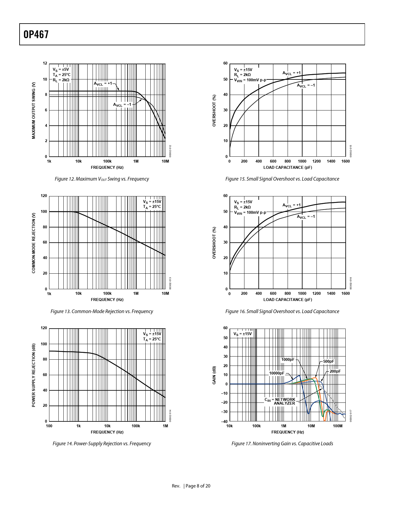 OP467. VS = ±5V. VS = ±15V. AVCL = +1. A = 25°C. RL = 2kΩ. L = 2kΩ. VIN = 100mV p-p. VCL = +1. AVCL = –1. G IN. S T. OOT (. TPU. R E. IMU X MA. 10k. 100k