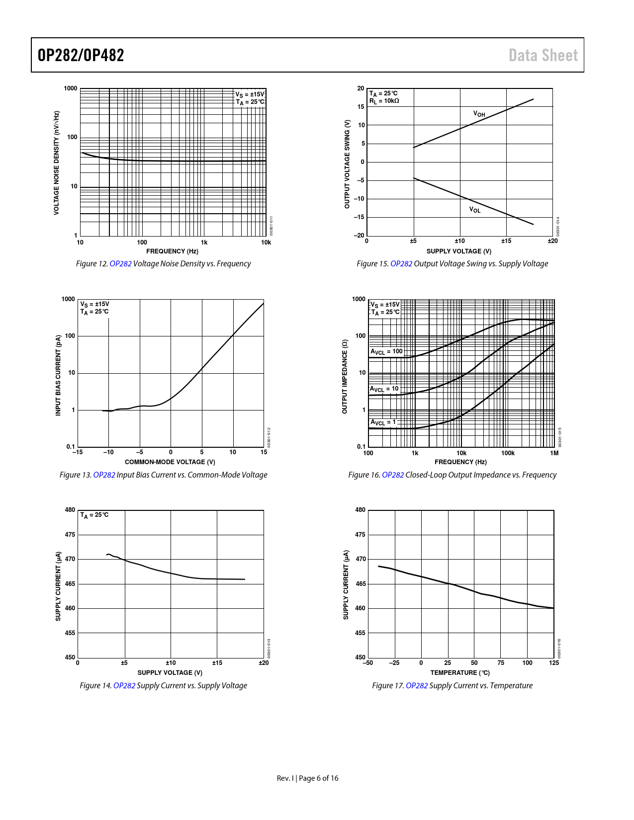 16 /6 — OP282/OP482. Data Sheet. 1000. S = ±15V. A = 25°C. L = 10kΩ. VOH. √Hz V/. …