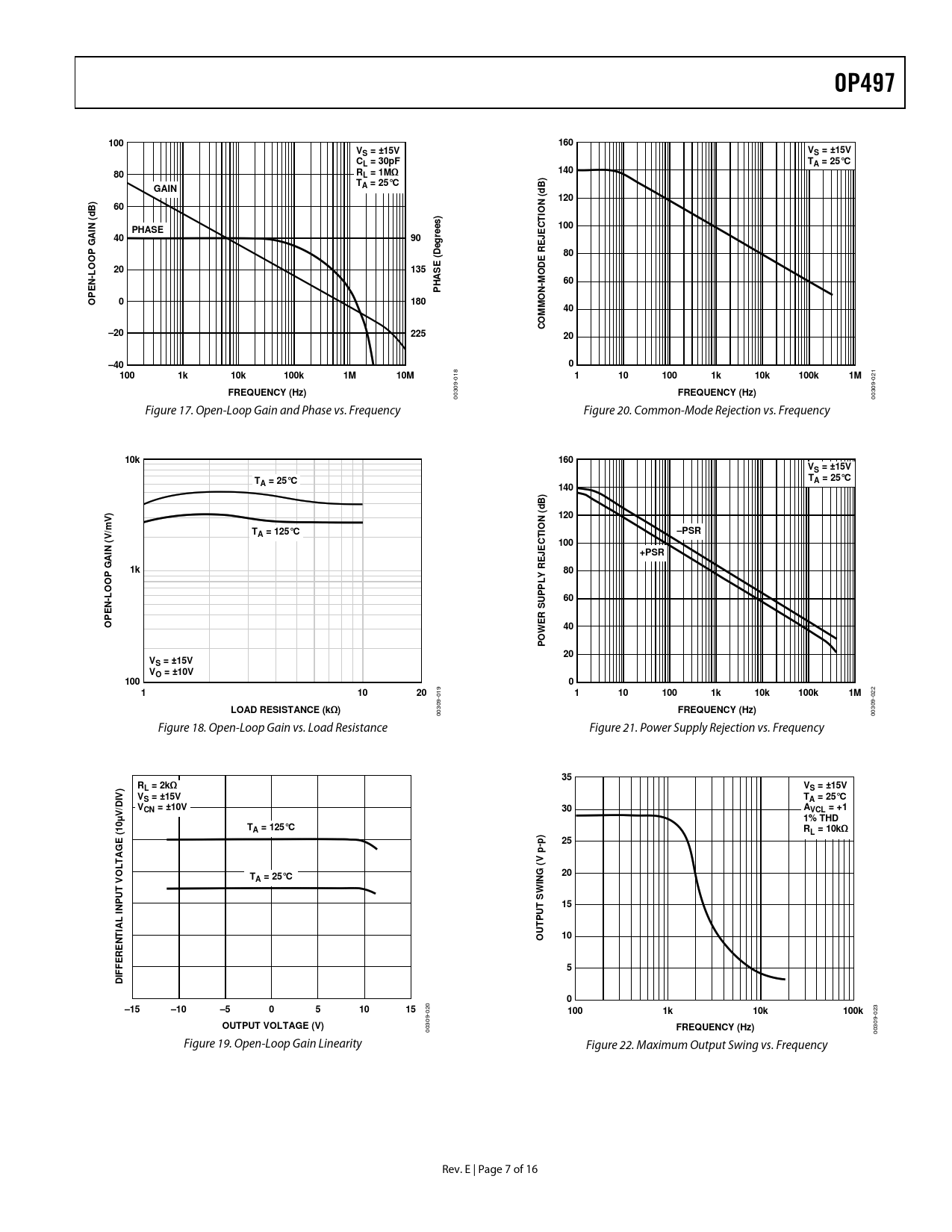 OP497. 100. 160. VS = ±15V. CL = 30pF. TA = 25°C. 140. RL = 1MΩ T. GAIN. A = 25°C. 120. N (. PHASE. rees) g. e D. OOP. 135. HAS. N O. 180. M O C. –20. 225. –40. 10k