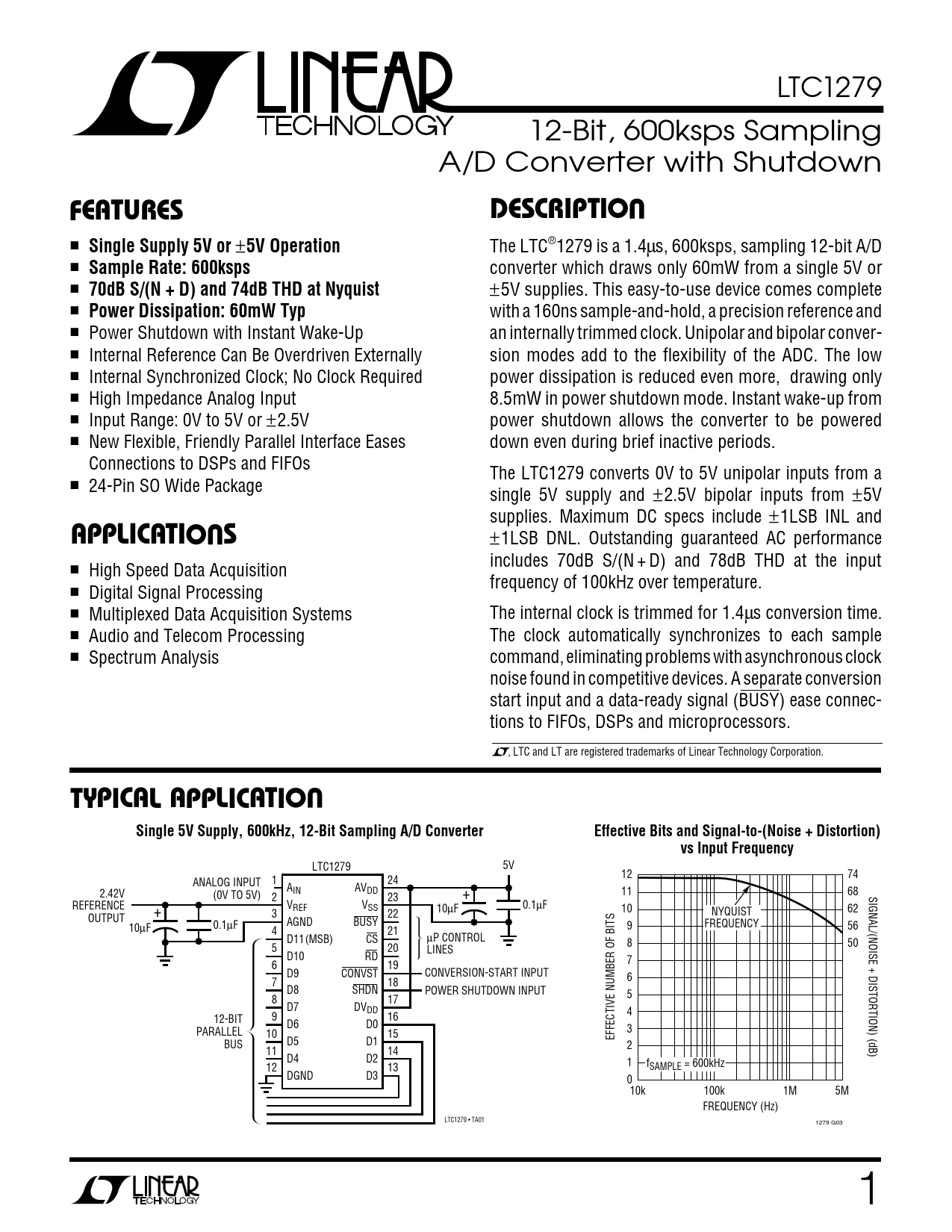 The LTC®1279 is a 1.4µs, 600ksps, sampling 12-bit A/D ■