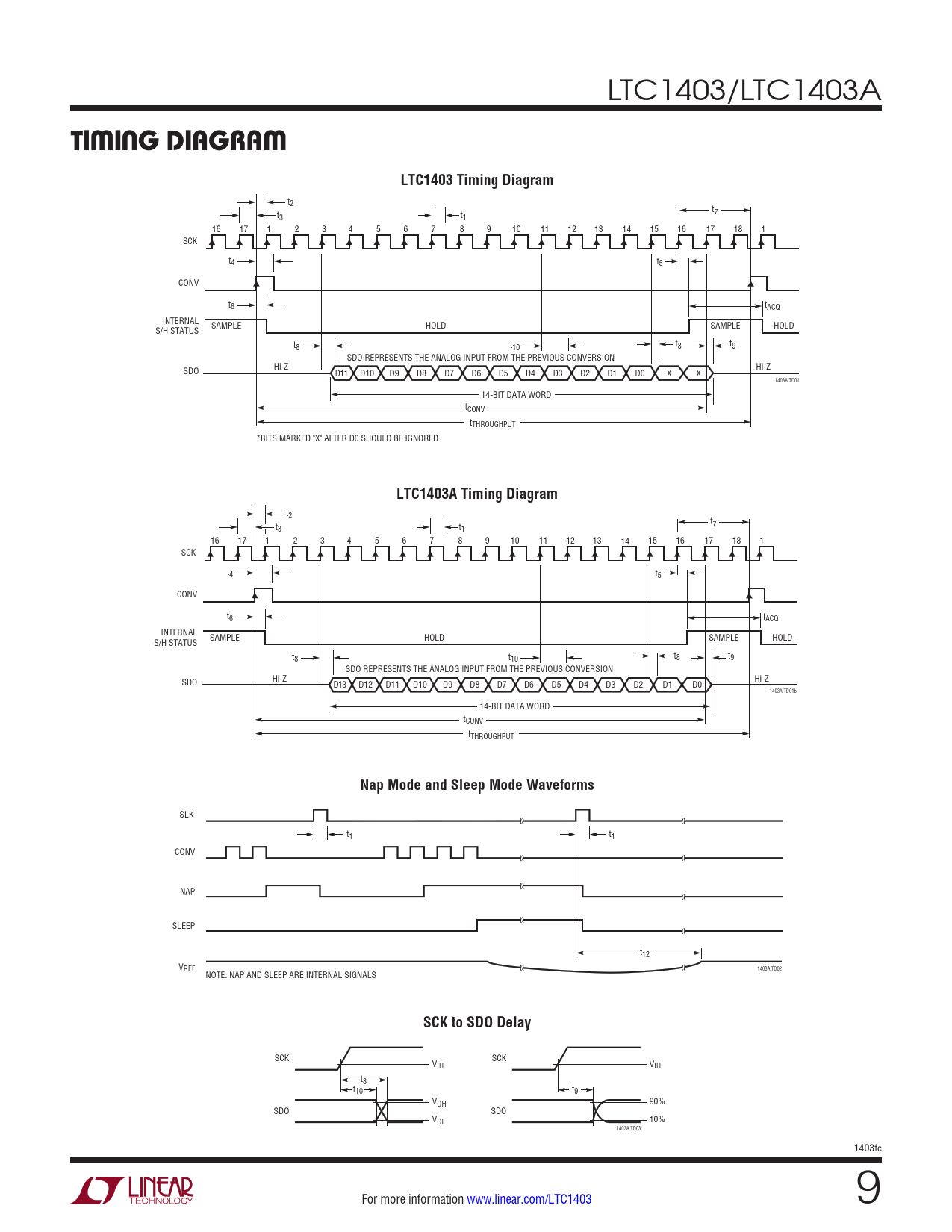 | Seiten / Seite | 22 / 9 — timing Diagram. LTC1403 Timing Diagram. LTC1403A Timing Diagram. Nap Mode … |