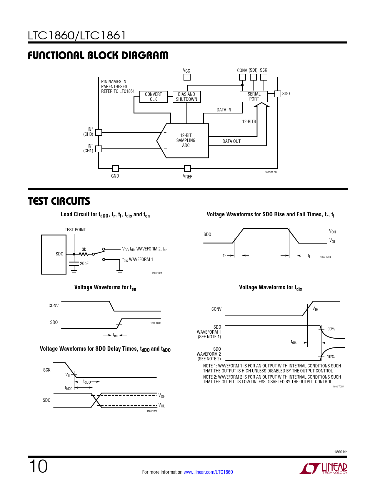 TEST POINT V SDO OH VOL 3k VCC tdis WAVEFORM 2, ten SDO tr tf 1860 TC04 tdis WAVEFORM 1 20pF 1860 TC01