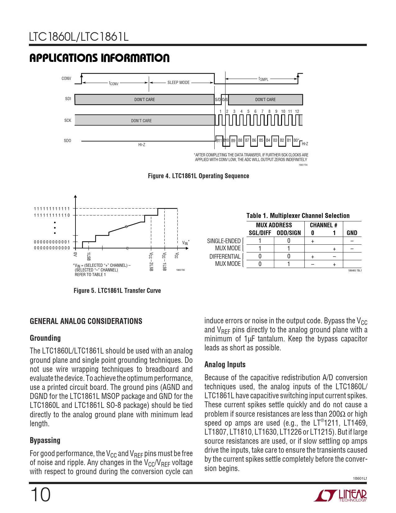 APPLICATIO S I FOR ATIO. Figure 4. LTC1861L Operating Sequence. Table 1. Multiplexer Channel Selection. MUX ADDRESS. CHANNEL #