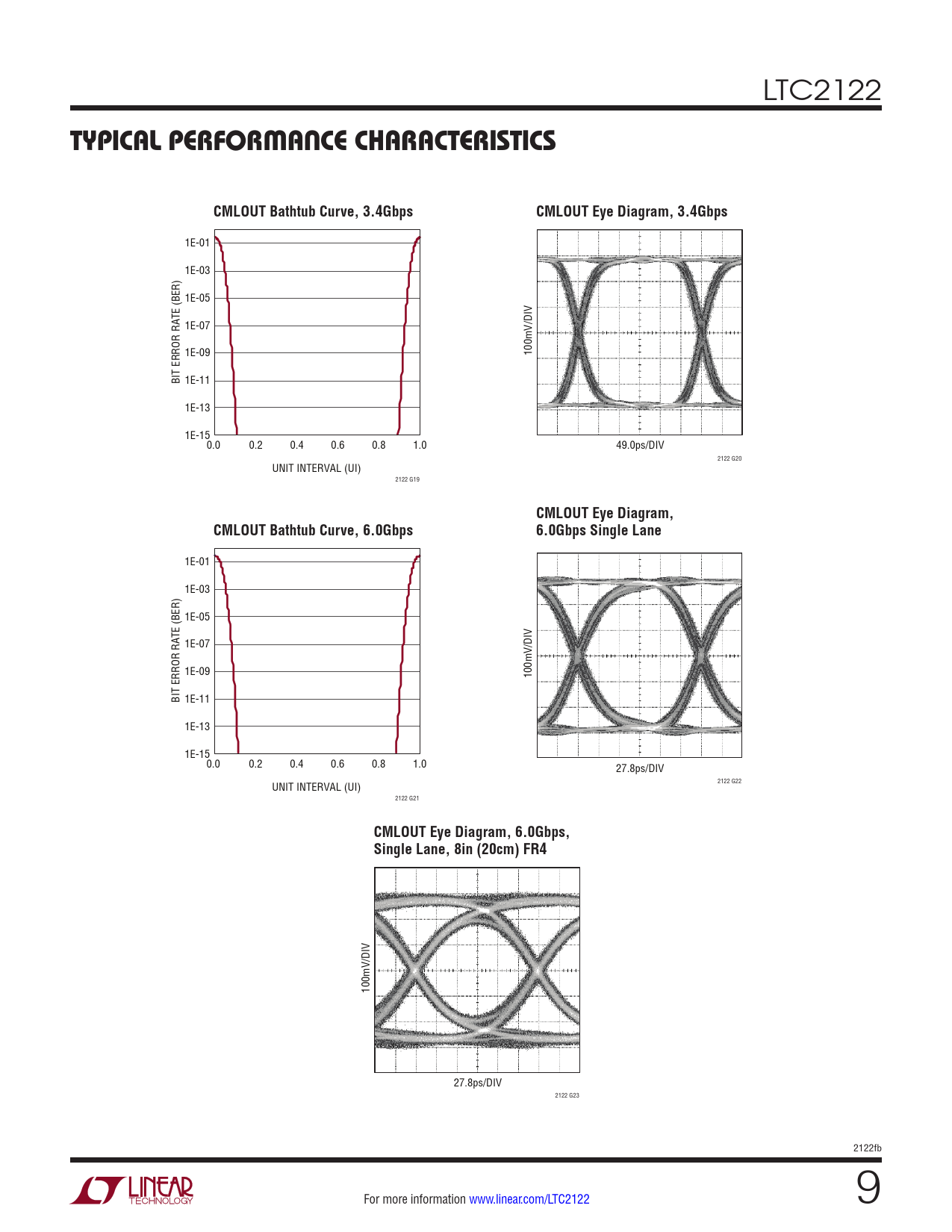1E-01 1E-03 1E-05 1E-07 1E-09 100mV/DIV BIT ERROR RATE (BER) 1E-11 1E-13 1E-150.0 0.2 0.4 0.6 0.8 1.0 27.8ps/DIV UNIT INTERVAL (UI) 2122 G22 2122 G21