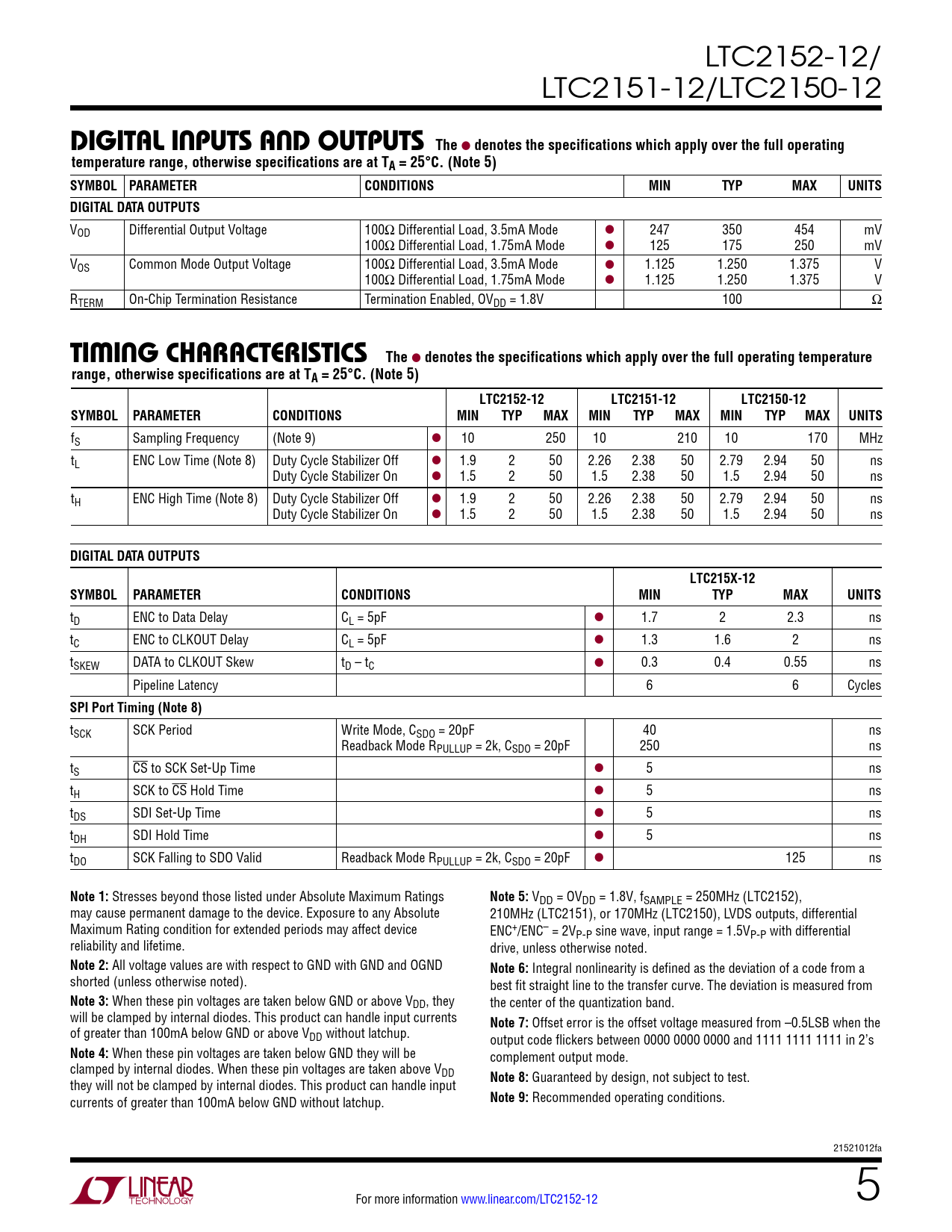 Datasheet LTC2152-12, LTC2151-12, LTC2150-12 (Analog Devices) - 5