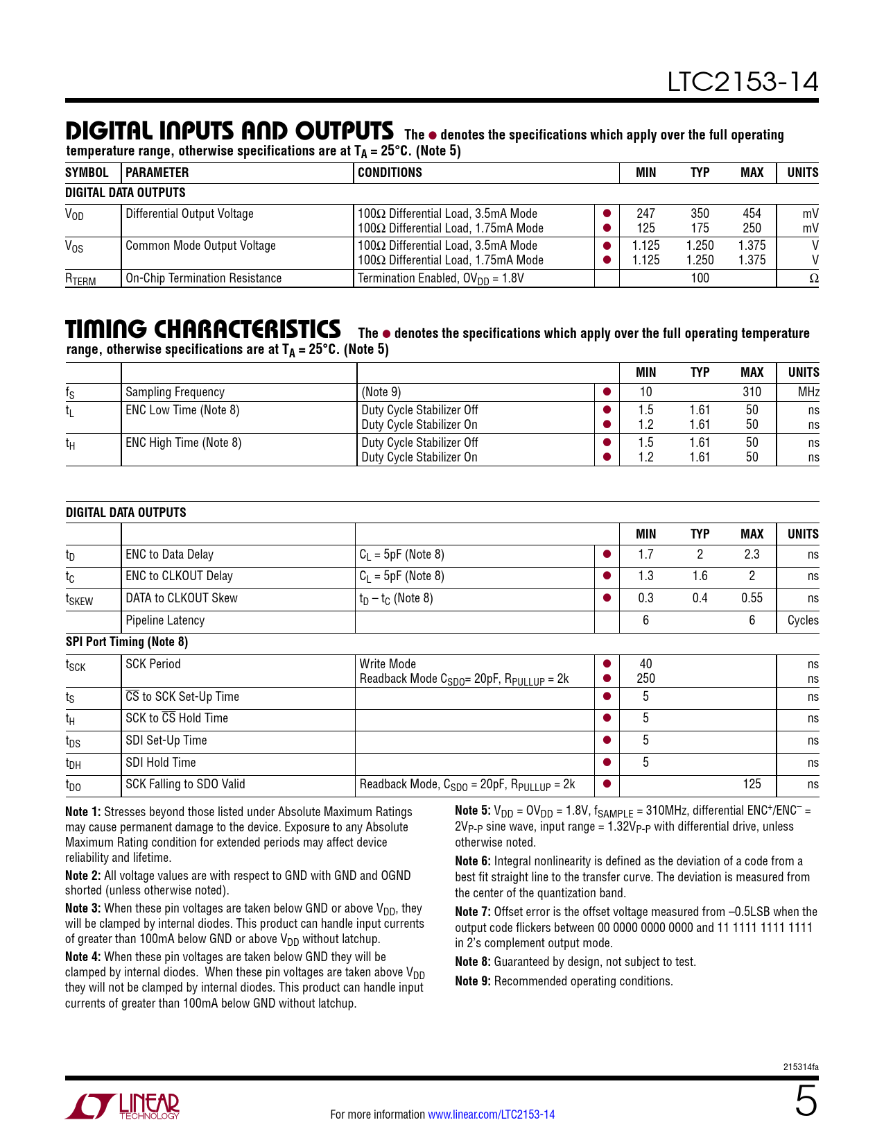Datasheet LTC2153-14 (Analog Devices) - 5