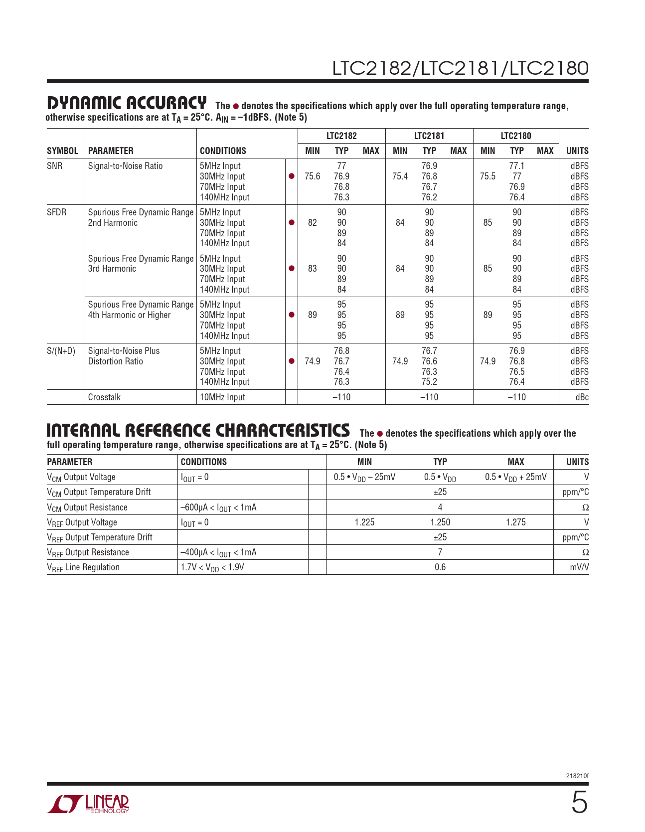 Datasheet LTC2182, LTC2181, LTC2180 (Analog Devices) - 5