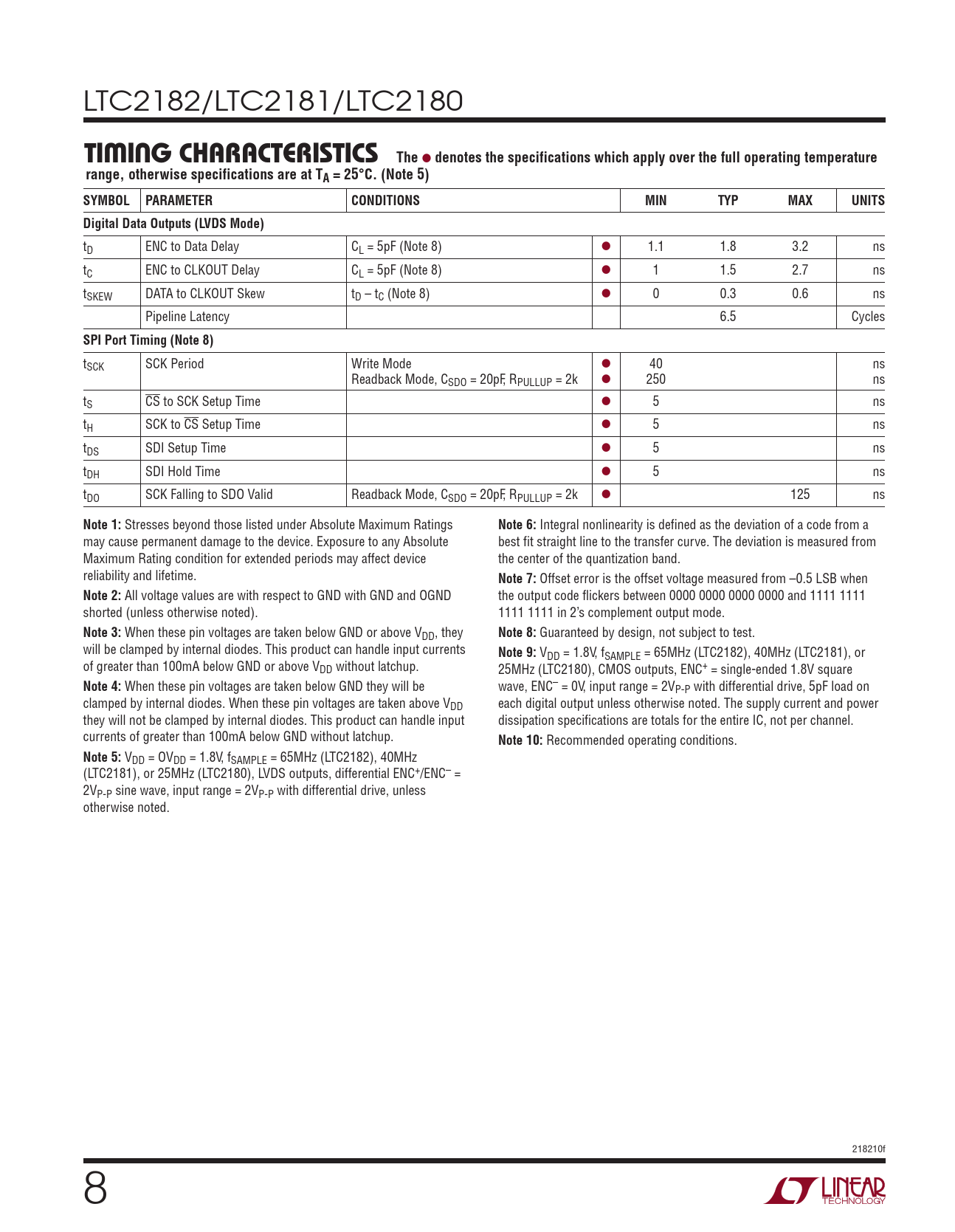 Datasheet LTC2182, LTC2181, LTC2180 (Analog Devices) - 8