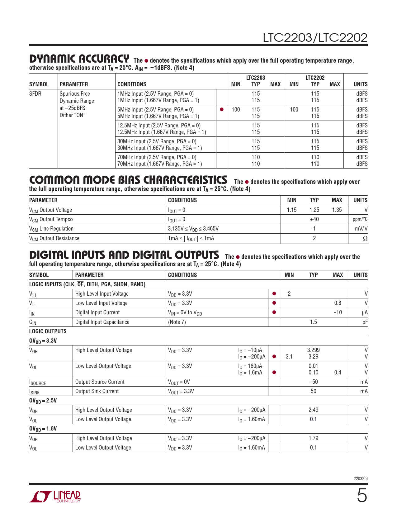 Datasheet LTC2203, LTC2202 (Analog Devices) - 5