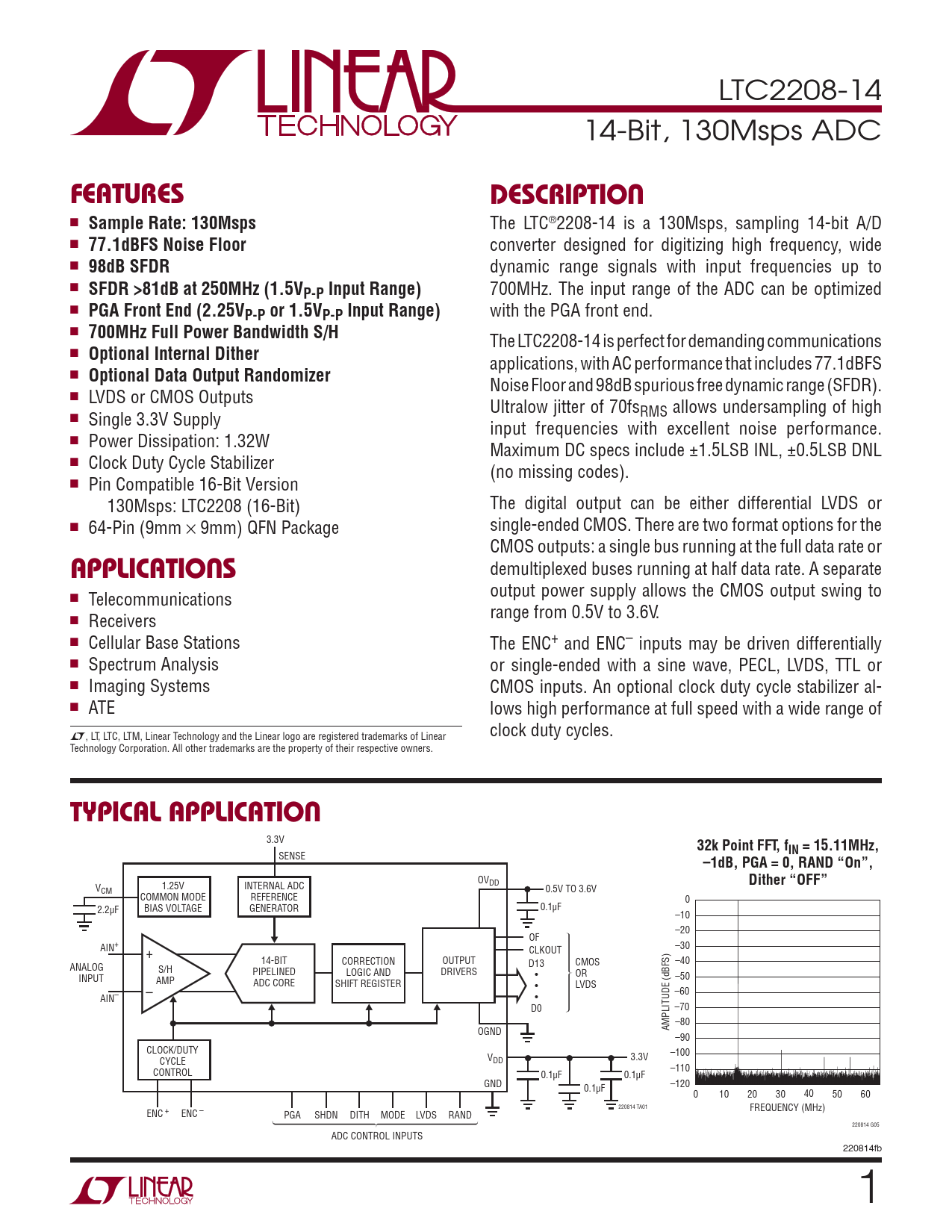 The LTC®2208-14 is a 130Msps, sampling 14-bit A/D n