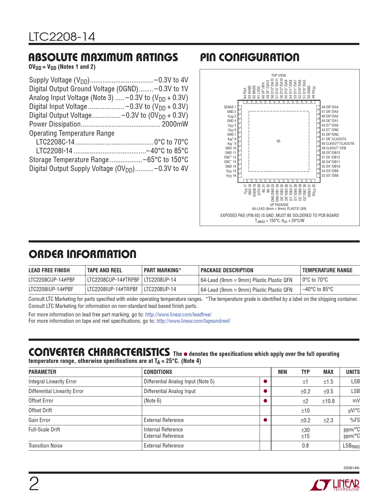 Datasheet LTC2208-14 (Analog Devices) - 2