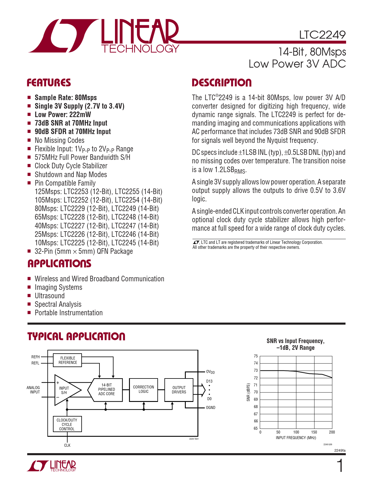 The LTC®2249 is a 14-bit 80Msps, low power 3V A/D ■